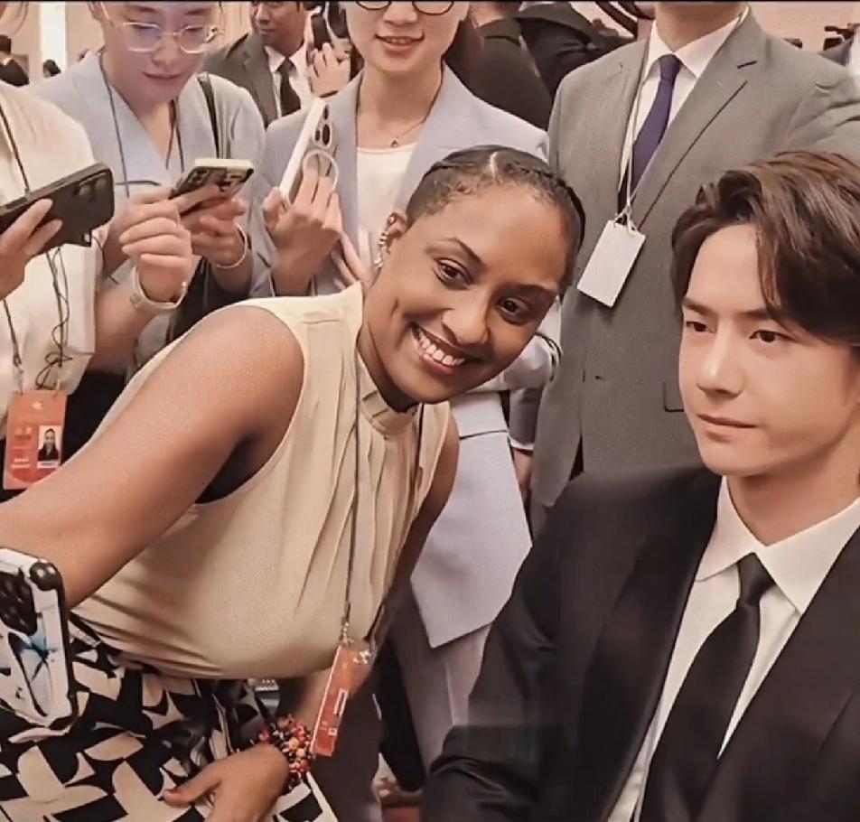 王一博打死也不相信,这么正经这么厉害的会议,他也会被围堵拍照,第一次看到那么弱小无助的王一博,走又走不了,拒绝又不好拒绝,王一博的粉丝群体范围太广,男女老少,全部通吃,一个个文静优雅的小姐姐也顾不得礼貌礼节了,为了和王一博拍照都豁出去了,个别大叔有可能是被家里的闺女逼着要合影的,这么正规的会议快成了王一博粉丝见面会……