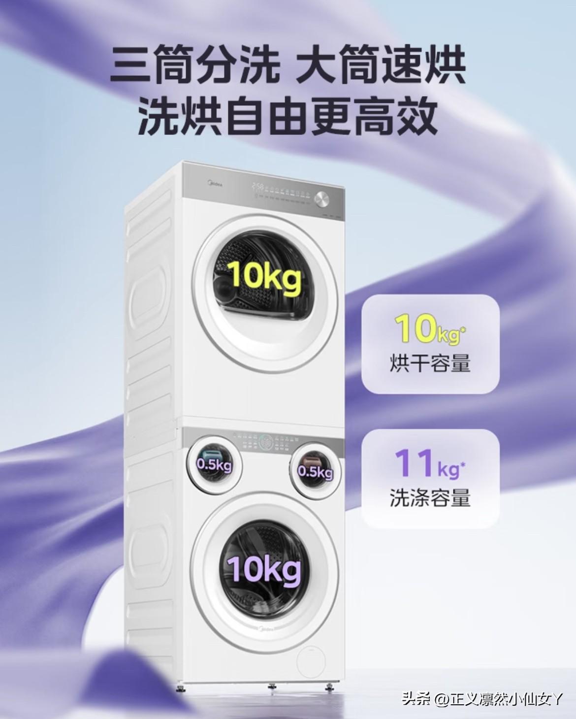 ‼️‼️不管是北方的雾霾沙尘暴,还是南方的回南天,洗衣烘衣真的太闹心了! 直到挖到这台三筒可爱多洗烘套装,直接把洗衣烘衣的幸福感拉满,南北适配度100%✅随时烘、放心穿,再也不用跟潮湿和灰尘较劲~ 大桶支持双智能投放,小桶也能自动投放洗衣液,很方便。三桶设计确实比普通洗衣机重很多,送货和安装师傅都提到这一点。烘干机很满意,烘得很快,整体运行声音也比较小,这点很惊喜! 两个小筒搭载的元气棒黑科技很省心✨,左边带小蓝棒洗袜子,抑菌除味一步到位✅;右边带小粉棒处理内衣裤,温和清洁又能深层杀菌,再也不用单独手洗⏰;大筒用来洗外衣、床单被罩,银离子随水除菌,搭配精华洗,一次就能搞定全家衣物,不用分批等待。 烘干机是全变频热泵系统🥰!烘衣服会更温和护面料,而且大风量能均匀烘透衣服,烘完的衣服直接就能上身或者收纳,不用再晾晒真的省了不少时间。蒸发器自清洁功能也很好用,烘干机用久了里面容易积毛屑,但是这款会自动冲刷表面,不用费心拆洗就能维护机器,真的巨省心👍 洗衣机是天天用的家电,选对太重要!美的可爱多把“分开洗、洗得净、不串味”这些刚需抓得死死的,不是花架子。被手洗贴身衣物折磨过的宝子,真心可以冲,用一次就知道有多香!