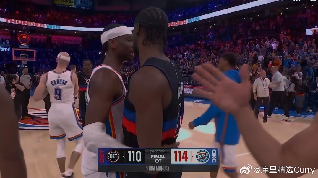 东西部榜首大战,全场3人六犯离场,雷霆加时114:110战胜活塞。
