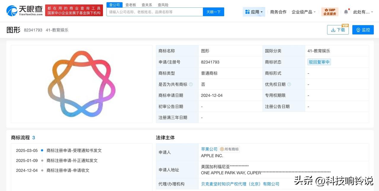 【苹果已在中国申请多枚AI图形商标 苹果已在中国申请多枚AI相关商标】国行版苹果AI 据媒体报道,北京时间3月31日,苹果AI系统Apple Intelligence短暂在中国上线,但最终证明只是苹果的一个误操作,目前已下线。 天眼查知识产权信息显示,2024年,苹果公司已在中国申请注册多枚苹果智能相关图形商标,国际分类涉及网站服务、教育娱乐、科学仪器等,当前多枚商标已被驳回复审,部分商标状态为初审公告。 天眼查信息: