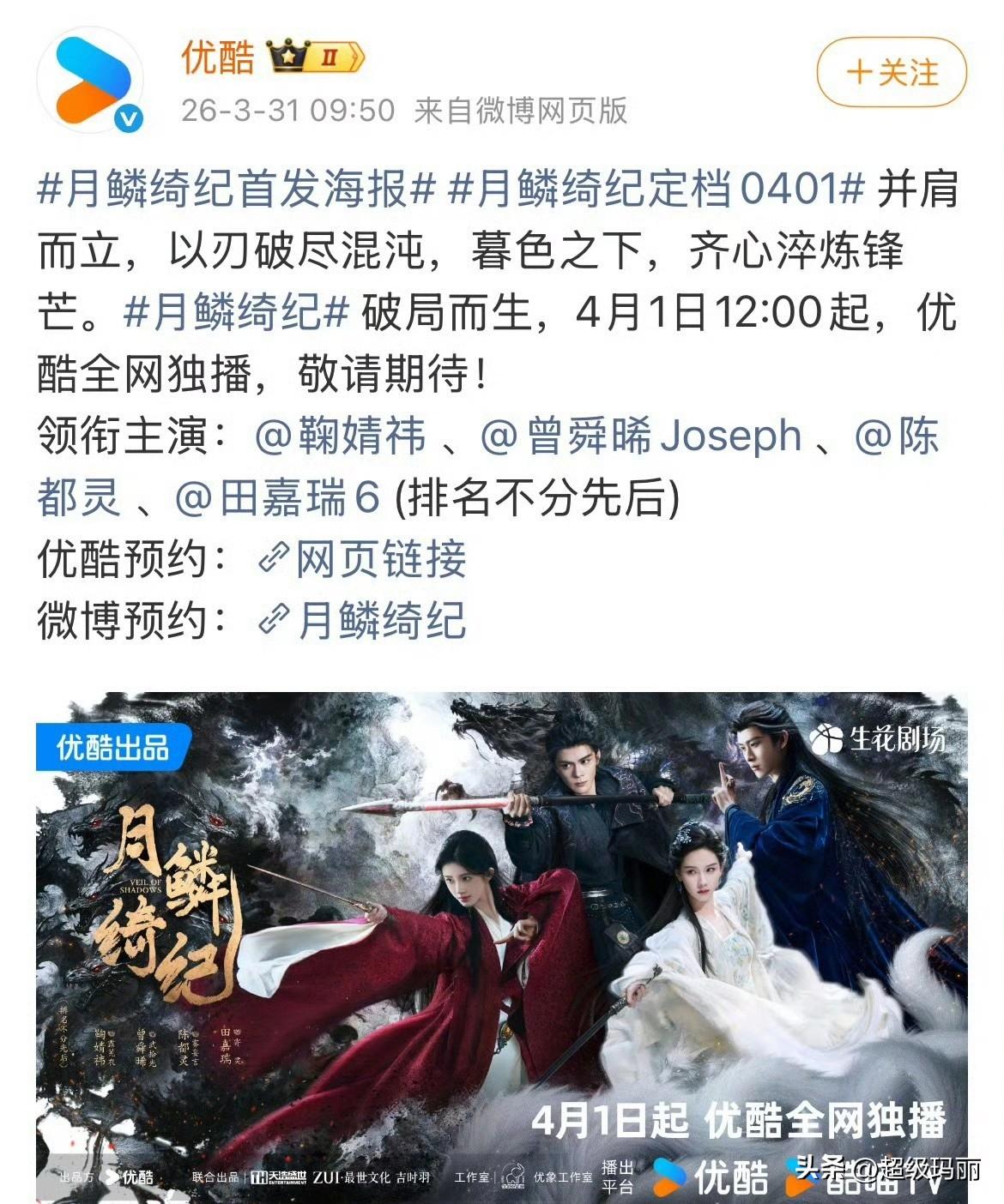 月鳞绮记空降了,明天中午开播 鞠婧祎 被前公司实名举报偷税漏税,这剧还能播吗[奸