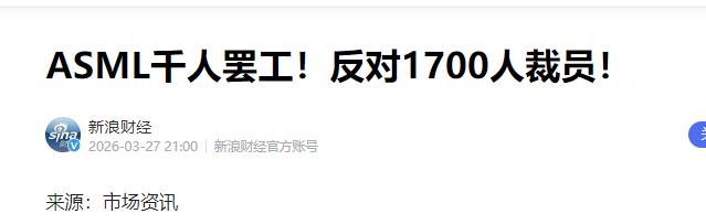 光刻机巨头阿斯麦,出大事了。荷兰总部,上千名工程师午饭时间直接撂下餐盘,把公司大门堵得水泄不通。导火索,是公司内部贴出来的一张通知。上面冰冷地写着:裁员1700人,另外再砍掉3000个中层管理岗。 我们要搞清楚,ASML凭什么能站上神坛?答案只有三个字,光刻机。尤其是那种全球独一份的EUV光刻机。 你想造5纳米以下的顶级芯片?对不起,台积电、三星、英特尔都得求ASML供货。这种机器一台就要10个亿人民币起步,里面装满了人类最顶尖的科技。 这玩意可不是靠资本运作“玩”出来的,是成千上万名工程师,几十年如一日,硬生生靠磨洋工、啃硬骨头给“磨”出来的。 可讽刺的是,管理层现在的吃相,实在是太难看了。就在刚刚过去的2025年,ASML的财报简直漂亮得不像话:净利润快100亿欧元了,营收冲破300多亿,手里攥着的订单还有将近400亿欧元。 这是什么概念?哪怕公司从今天起一张单子都不接,全员躺平,也足够大家大鱼大肉吃上好几年。 可就在这种“富得流油”的时候,管理层突然翻脸不认人了。他们宣布,要在全球砍掉1700个技术尖子,还有3000个管理岗位。 更让人心寒的是,裁员的消息刚发完,公司反手就掏出120亿欧元,接近1000亿人民币去回购股票。 显然,公司根本不缺钱,他们只是觉得这些“大神”太贵了,想把他们清理掉,好把省下来的工资发给那些急着分红的股东,让账面利润再好看一点。 甚至有人说,ASML这是在玩“大换血”。管理层打算到2028年再招2万个新人。说白了,就是想用便宜的“职场菜鸟”,换掉那些身经百战的“技术大神”。 他们天真地以为,现在的技术已经到了维护期,不需要那么多顶尖人才了。可实际上,最核心的High-NA EUV技术正到了拼刺刀的关键时刻。这种做法,简直是在自毁长城。 外面的日子确实也不好过。由于某些不可控的管制,中国市场这个大客户正在流失。以前中国能贡献三分之一的收入,到2026年估计要缩水到20%左右。 管理层眼看在外面多挣钱变难了,就开始打自己人的主意,想从员工身上抠出每一分利润。 纵观科技史,巨头的倒下,往往都是从内部烂掉的。一个科技公司不再由工程师说了算,而是被精打细算的会计师接管。公司把优秀人才看作“负担”而不是“资产”,那它离平庸就不远了。 那120亿欧元的回购款,确实让股东爽了,却把几千名工程师的心给伤透了。 人才一旦寒了心,报表做得再漂亮,也造不出世界上最先进的机器。一个眼里只有数字、没有情怀的公司,到底还能在芯片之巅站多久?咱们走着瞧。 信息来源:《ASML千人罢工!反对1700人裁员!》,新浪财经,2026年3月27日。