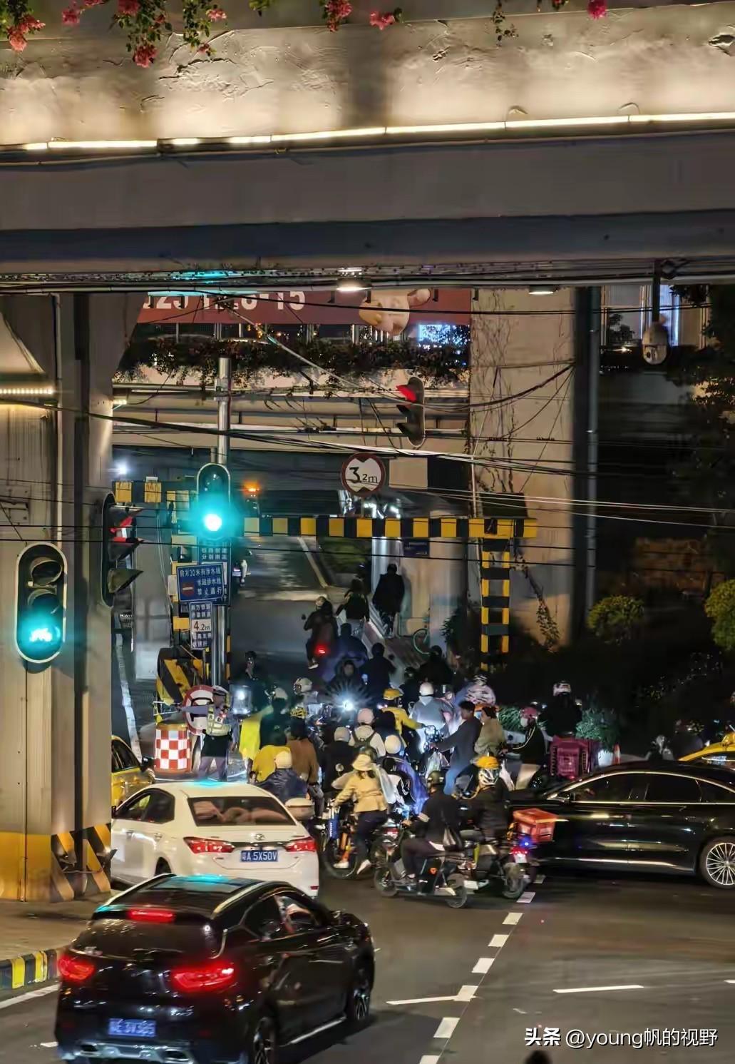 监控设备拍摄下的夜晚广州小北区域的路况画面,一样也是数量繁杂的电鸡夹杂在车流当中穿行。目前的广州,开电鸡出行感觉真是比小车方便多了,道路是否拥堵,一切都取决于电鸡驾驶人自身的习惯。技术高超者只要有一丝空间都可以照样挤过去,更别提红绿灯路口那些位置了,只要自己把握得好,一溜烟就穿过了路口,比小车绝对快不是一点。 在这片电鸡竞技场上,小车司机只能更小心翼翼的驾驶了。