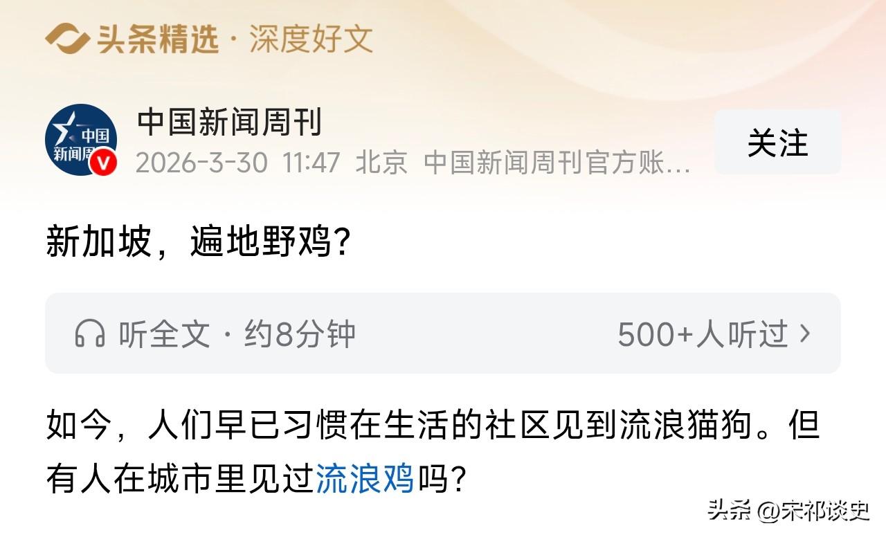 新加坡,遍地野鸡?从中国新闻周刊了解到,新加坡如今满大街都是“流浪鸡”,它们大摇大摆逛马路、进地铁,本地人早已见怪不怪,甚至这些野鸡还受法律严格保护,伤害它们可能面临高额罚款和监禁。 这些野鸡其实是红原鸡,也就是家鸡的祖先,曾在新加坡一度被认为灭绝,大约十年前重新回归,被当地人视作生态变好的标志。 可没想到疫情期间不少人养宠物鸡,解封后大量弃养,家鸡与红原鸡杂交,导致混血鸡数量暴增,彻底泛滥成灾。 泛滥的野鸡凌晨打鸣、随地排泄,严重扰民,可当地超九成居民却不同意清理,觉得增添了乡野情趣。更麻烦的是,持续杂交让纯种红原鸡面临基因被稀释的问题,学界只能呼吁通过基因检测差异化管理,可短期内根本难以实现。
