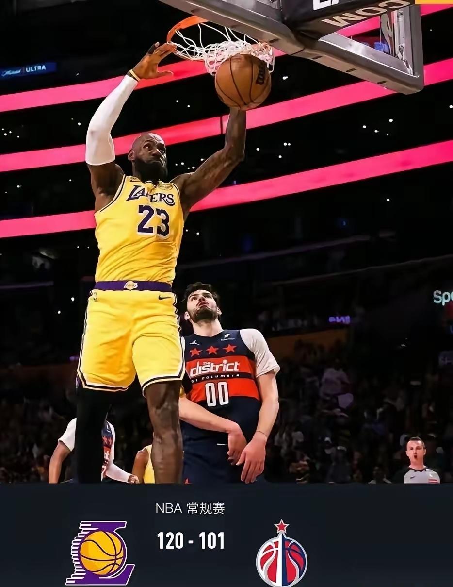 继续创纪录,41岁的詹姆斯,又砍下21分10篮板12助攻,带领球队120-101大胜奇才。 这场比赛出场33分钟,职业生涯第125次三双,也是历史最老拿下三双的纪录。 詹姆斯仍然是球队的核心,还可以决定比赛的胜负,依然是全明星级别的存在。 詹姆斯,老当益壮。湖人队记詹姆斯 詹姆斯法则