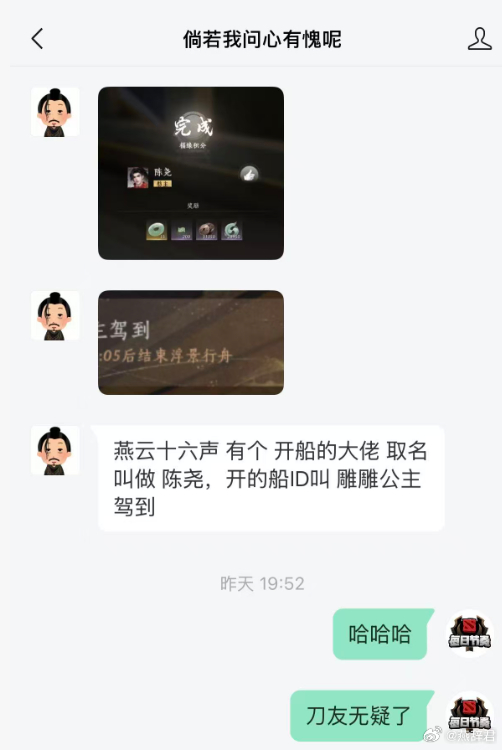水友投稿,在燕云十六声,有个开船的大佬,取名陈尧,然后开的船叫雕雕公主,哈哈哈哈,这肯定是一位刀友啊dota2