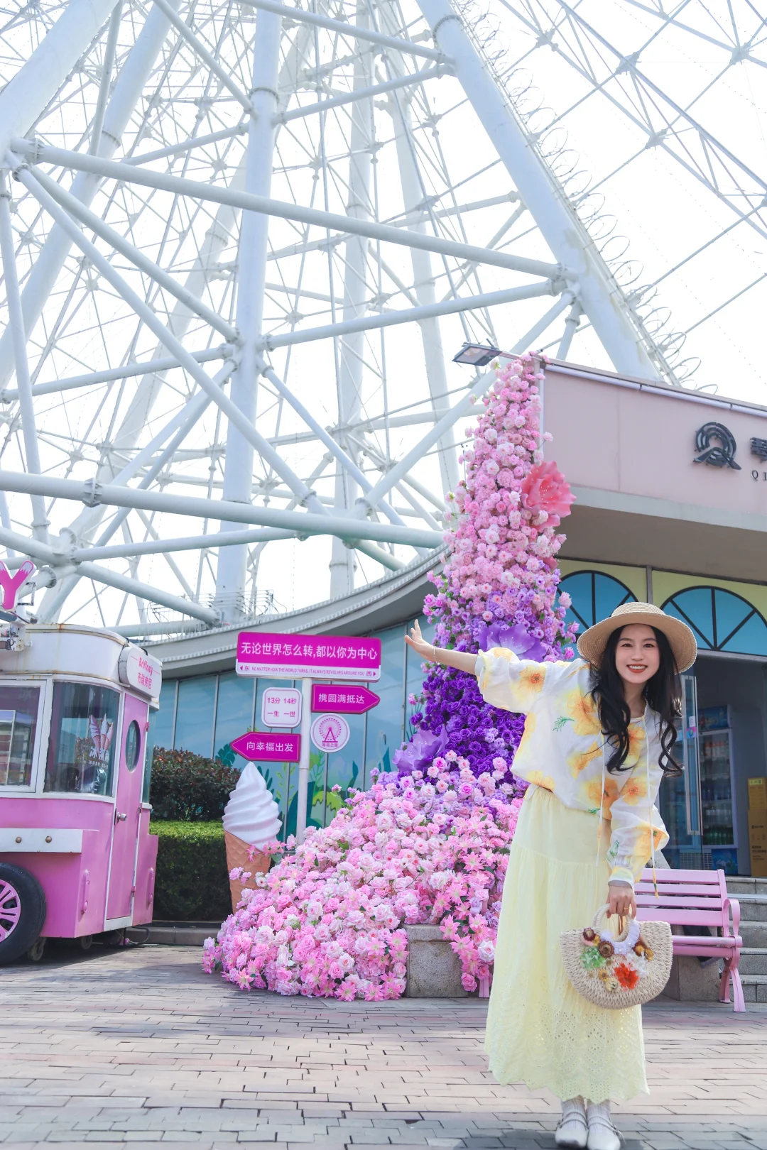摩天轮下的温柔花海,风一吹都是春天的味道,随手拍都是治愈系大片🎡