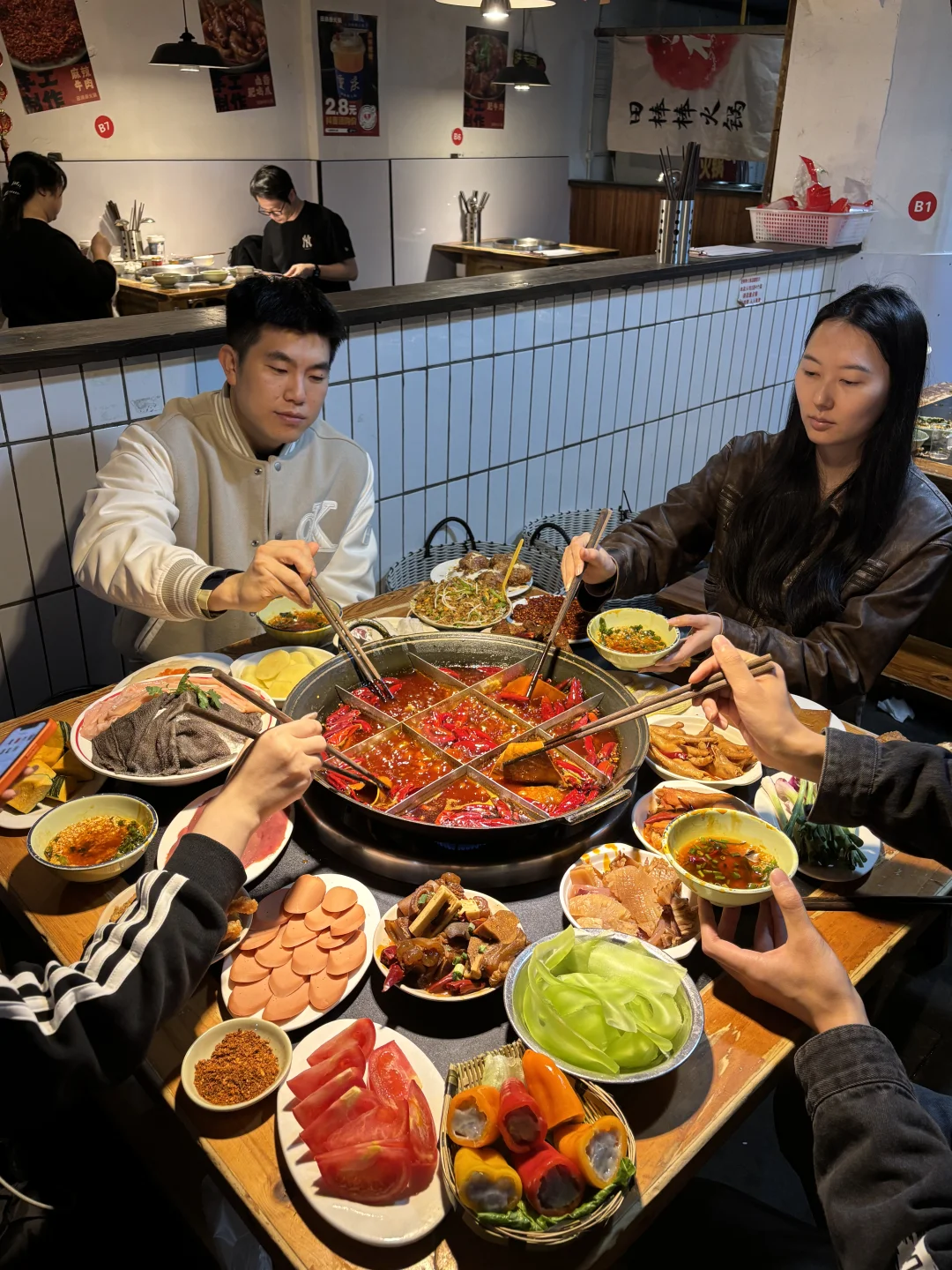 2️⃣田棒棒:王迅同款火锅!昨天下午五点过去吃都在排队,他们家的彩椒虾滑和竹荪虾滑很有特色!坨坨牛肉真的好糯好美味,她们家味道还是很正宗,还可以来一杯甜水水解辣!