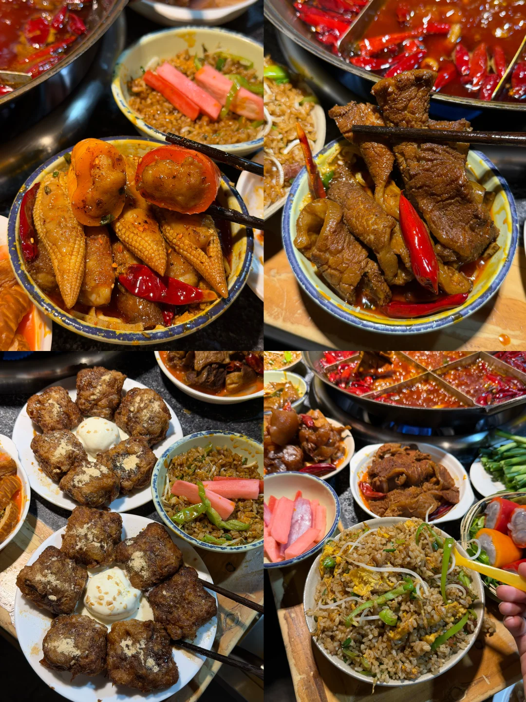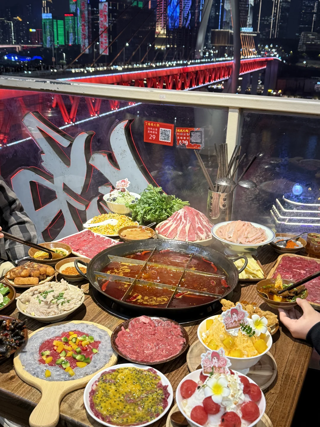 3️⃣丁嬢嬢江景火锅:她们家开了好多年了,滑肉、乌鸡爪还有牛肉四拼每次和朋友去都必点!现炒的蛋炒饭非常香~最后来一份甜品剎国,靠窗的江景位置一定要早点去!