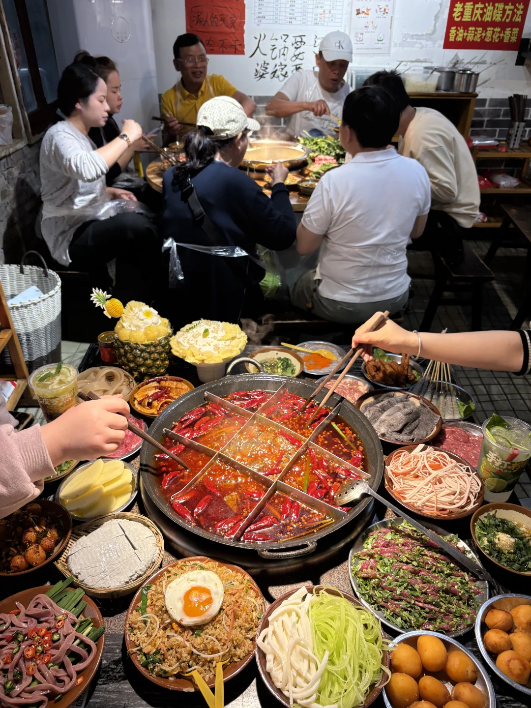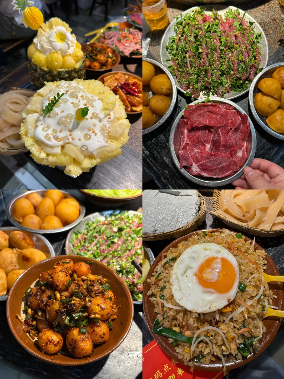 4️⃣蓉姐:居民楼下的棚棚火锅,来吃的基本都是本地人,苕皮都是现做的!乱劈柴炒饭是真的香,菜品份量也很多,价格平价味道巴适!