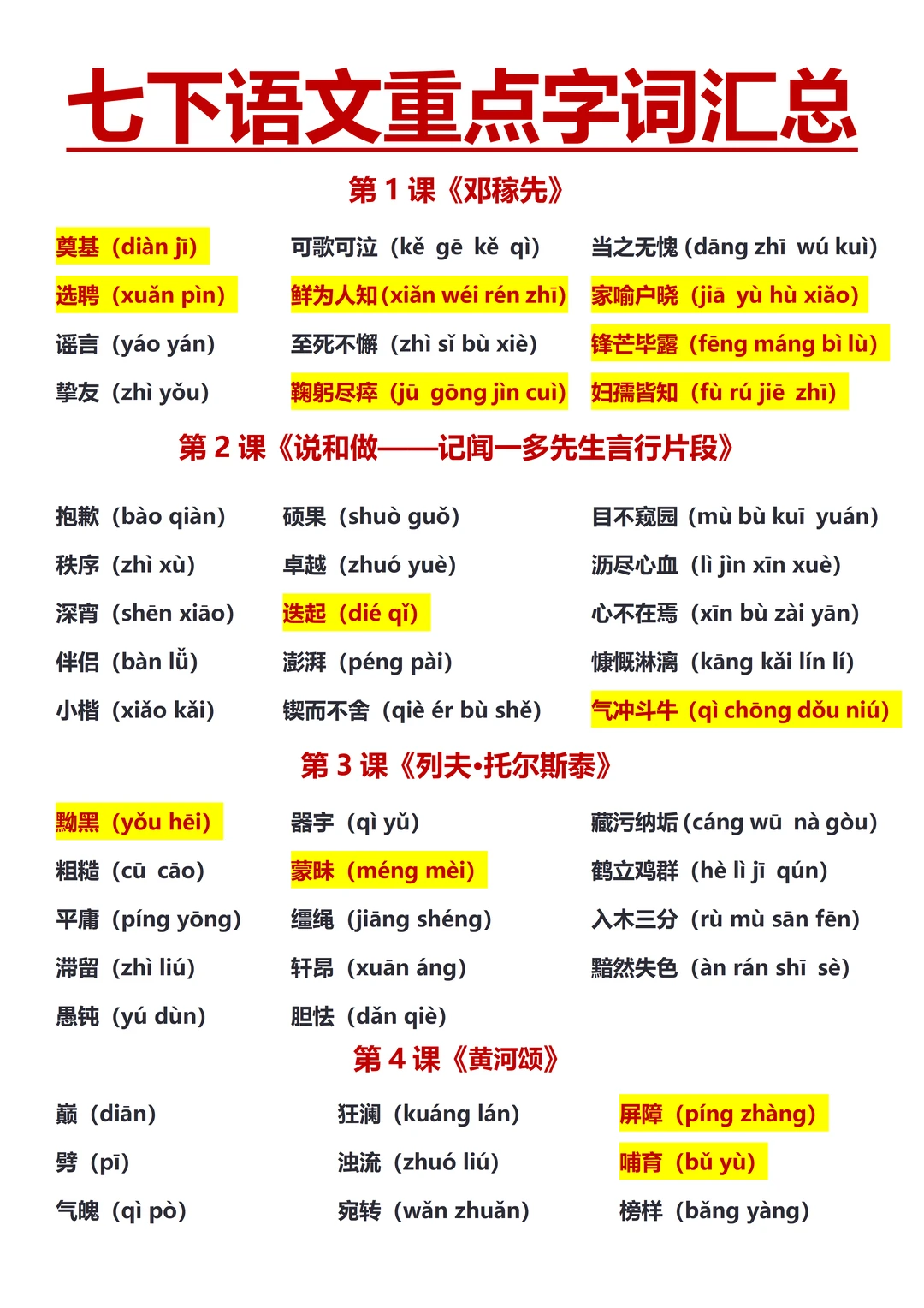 七下家长必看!带了9届初一,火箭班都在用的【七下第一次月考复习资料】来啦[哇R]
