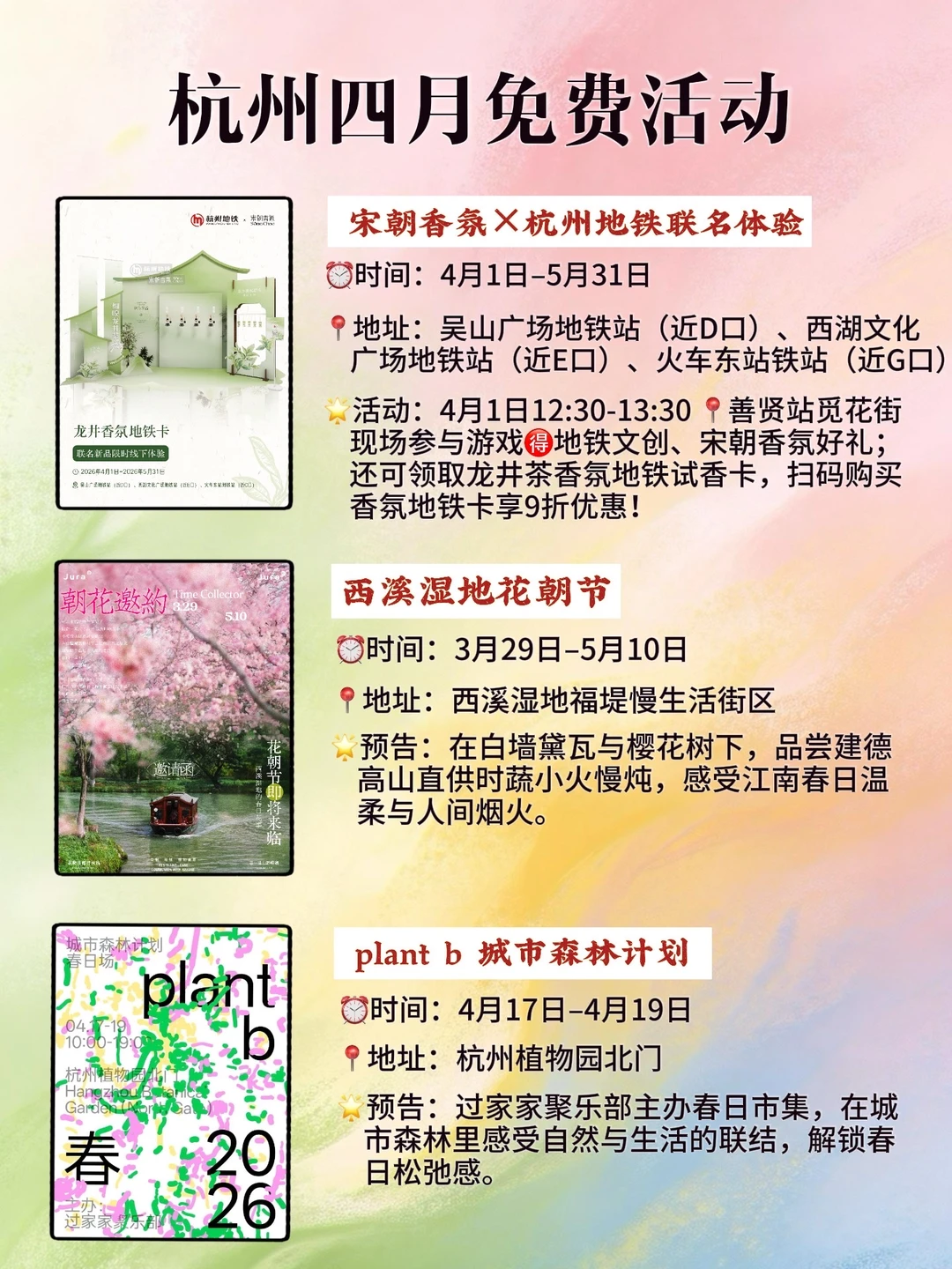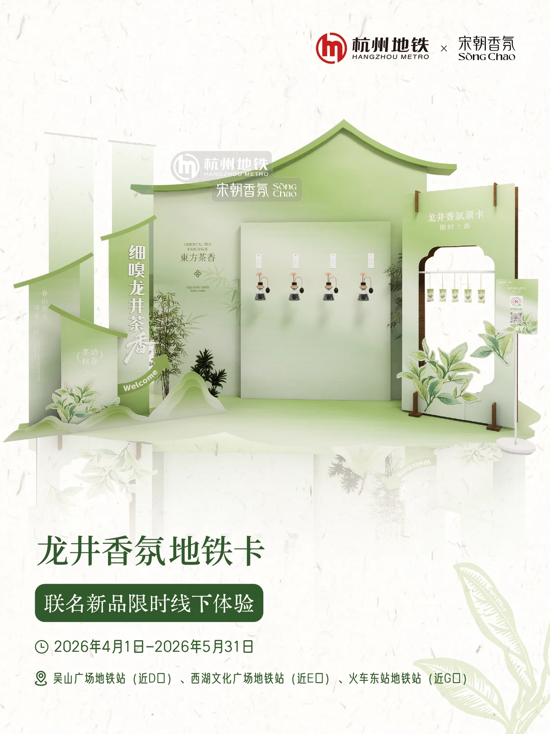 ⏰4月1日12:30-13:30 📍善贤站觅花街,现场参与游戏🉐地铁文创、宋朝香氛好礼;还可领取龙井茶香氛地铁试香卡,扫二维码购卡还有九折优惠!