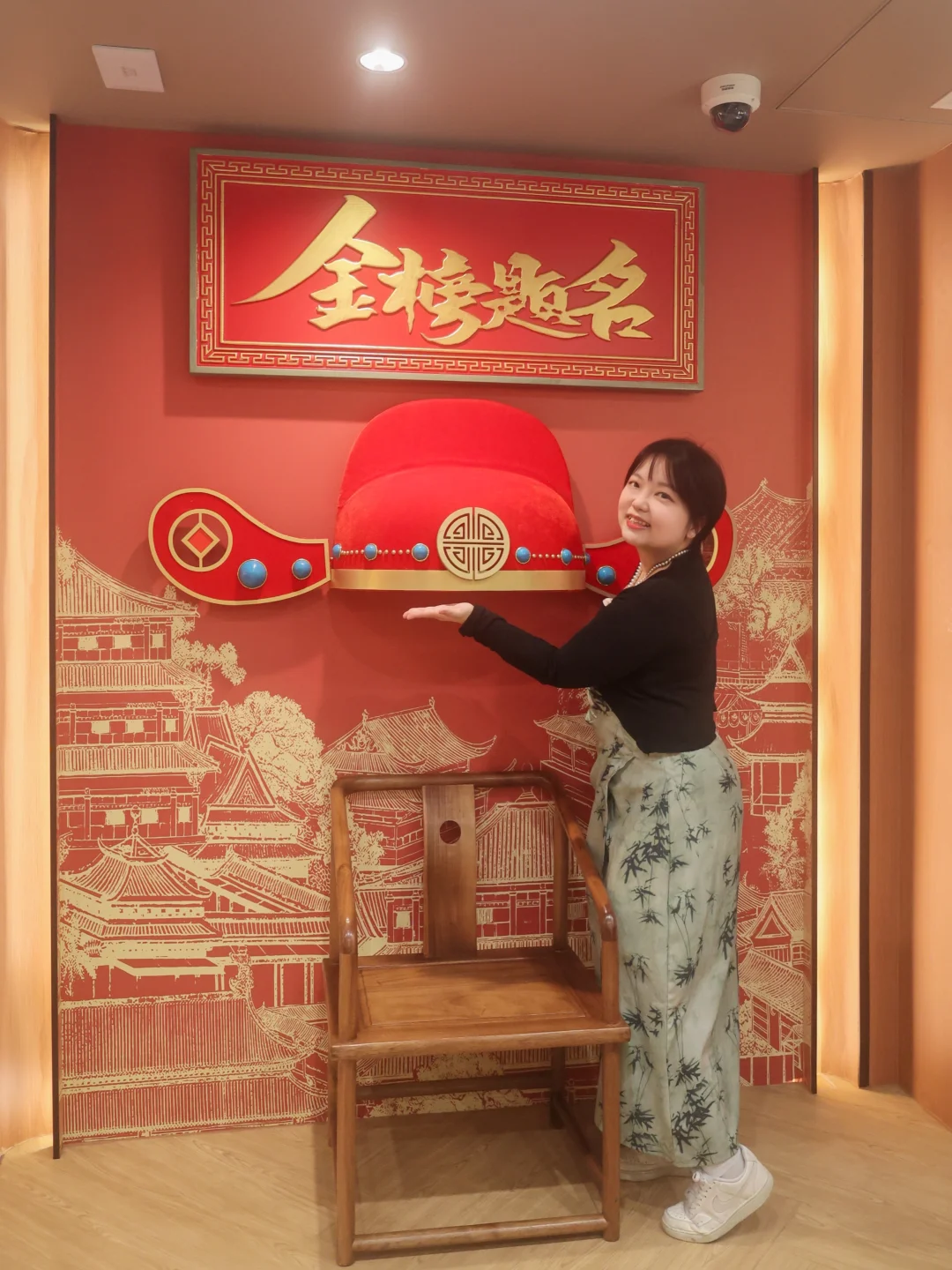 整面墙的流光鳌鱼灯璀璨夺目,寓意「独占鳌头」,是中考高考祈福的绝佳打卡点;旁边还有超出片的状元帽打卡墙,不管是学生党、备考党,还是带娃家庭,都一定要来这层拍照,沾沾状元喜气