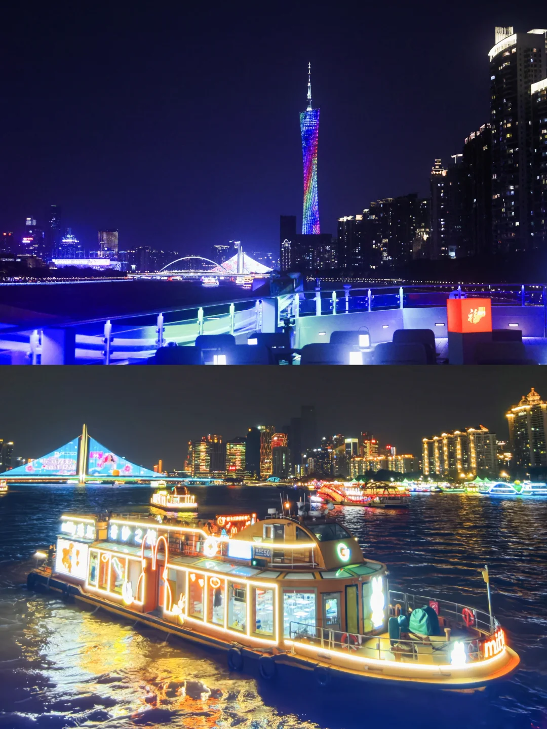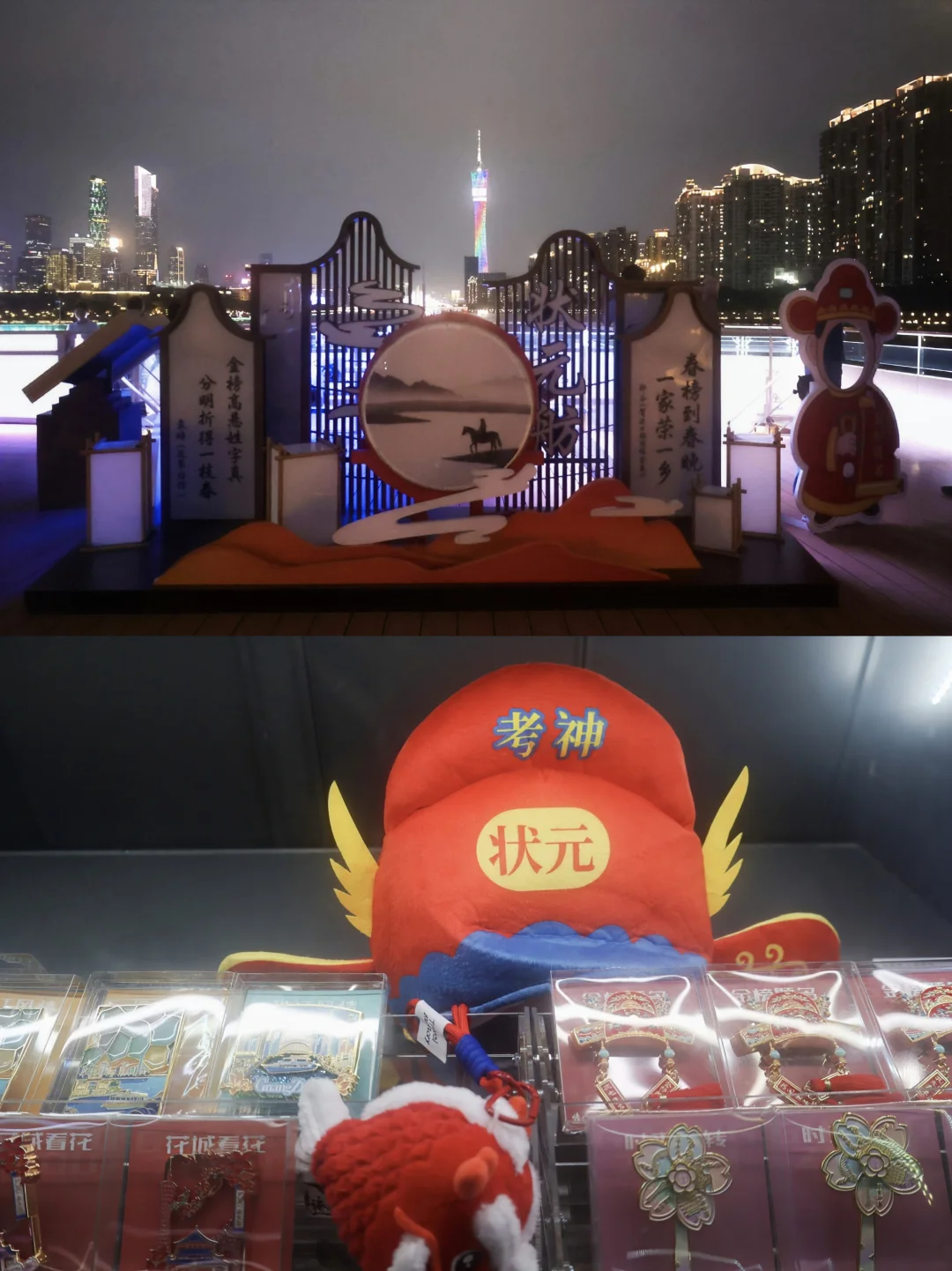 全船视野天花板!全露天360°无死角甲板,广州塔、猎德大桥、珠江新城CBD璀璨夜景尽收眼底。甲板上还设有镂空状元牌坊,把头探进牌坊,一秒变身“当朝状元”,仪式感直接拉满