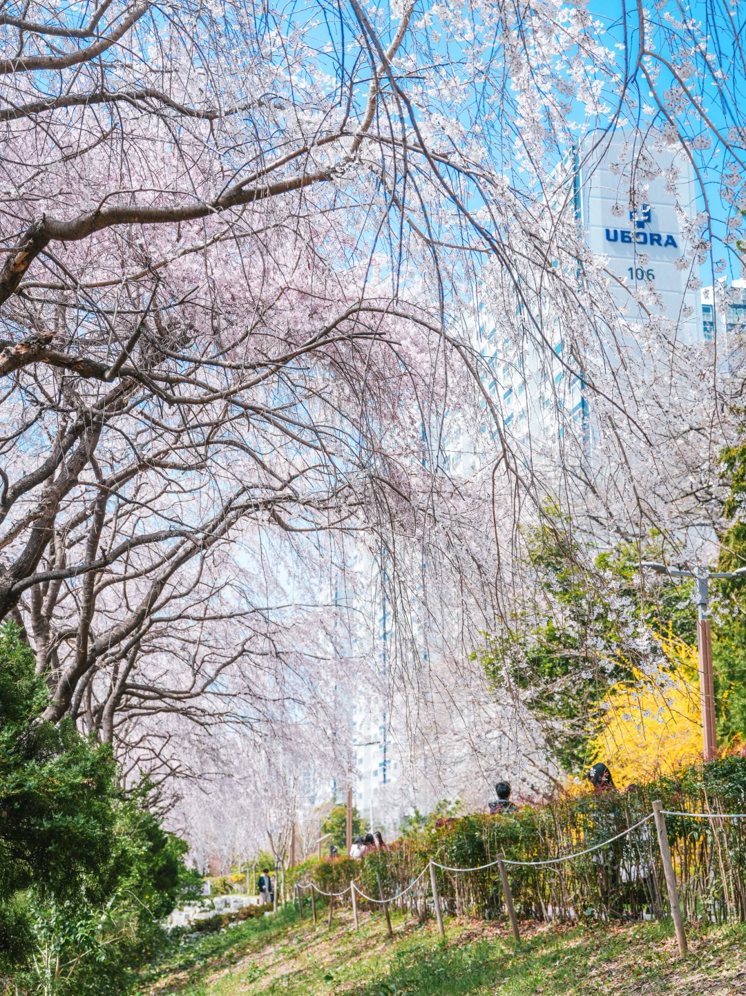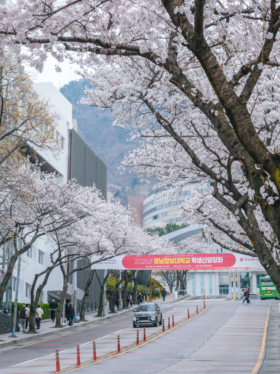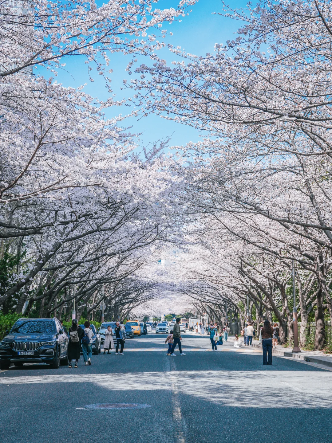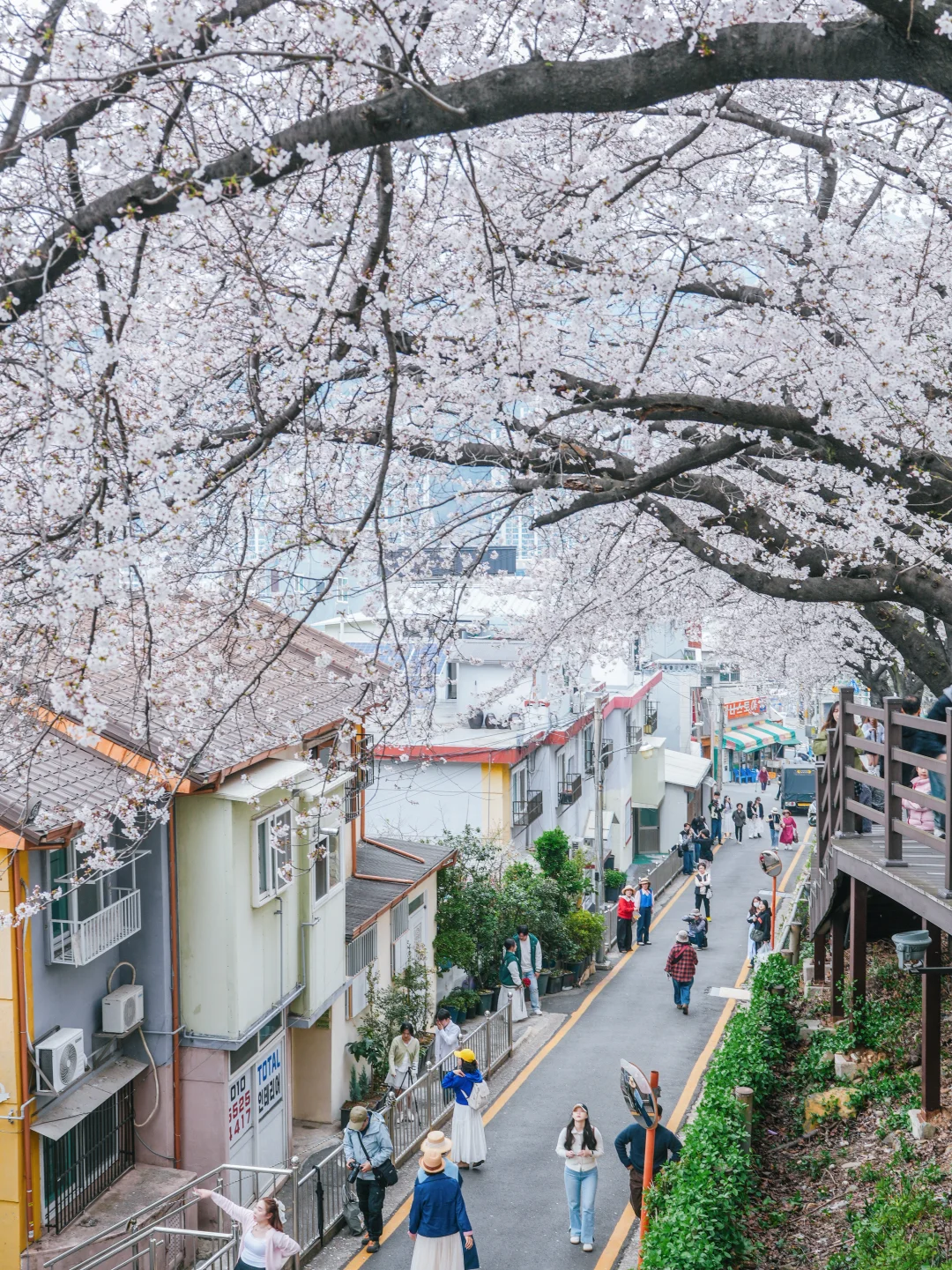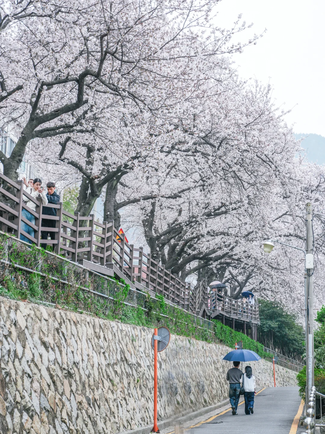 不愧是釜山樱花的地标打卡,这里已超70%盛开,拍照已经非常出片了,樱花树下的小道和木栈道,再有几天就会迎来樱花雨。