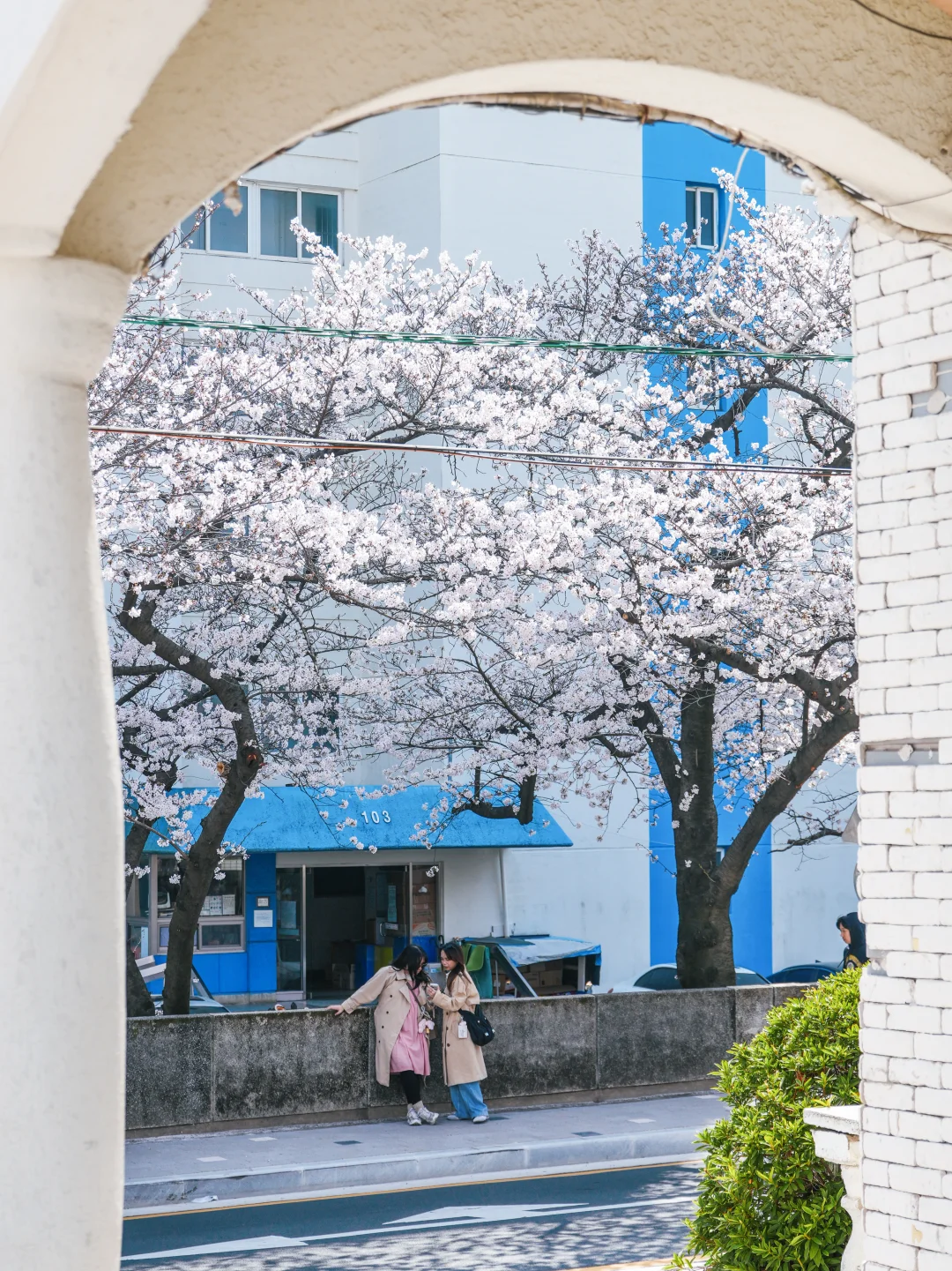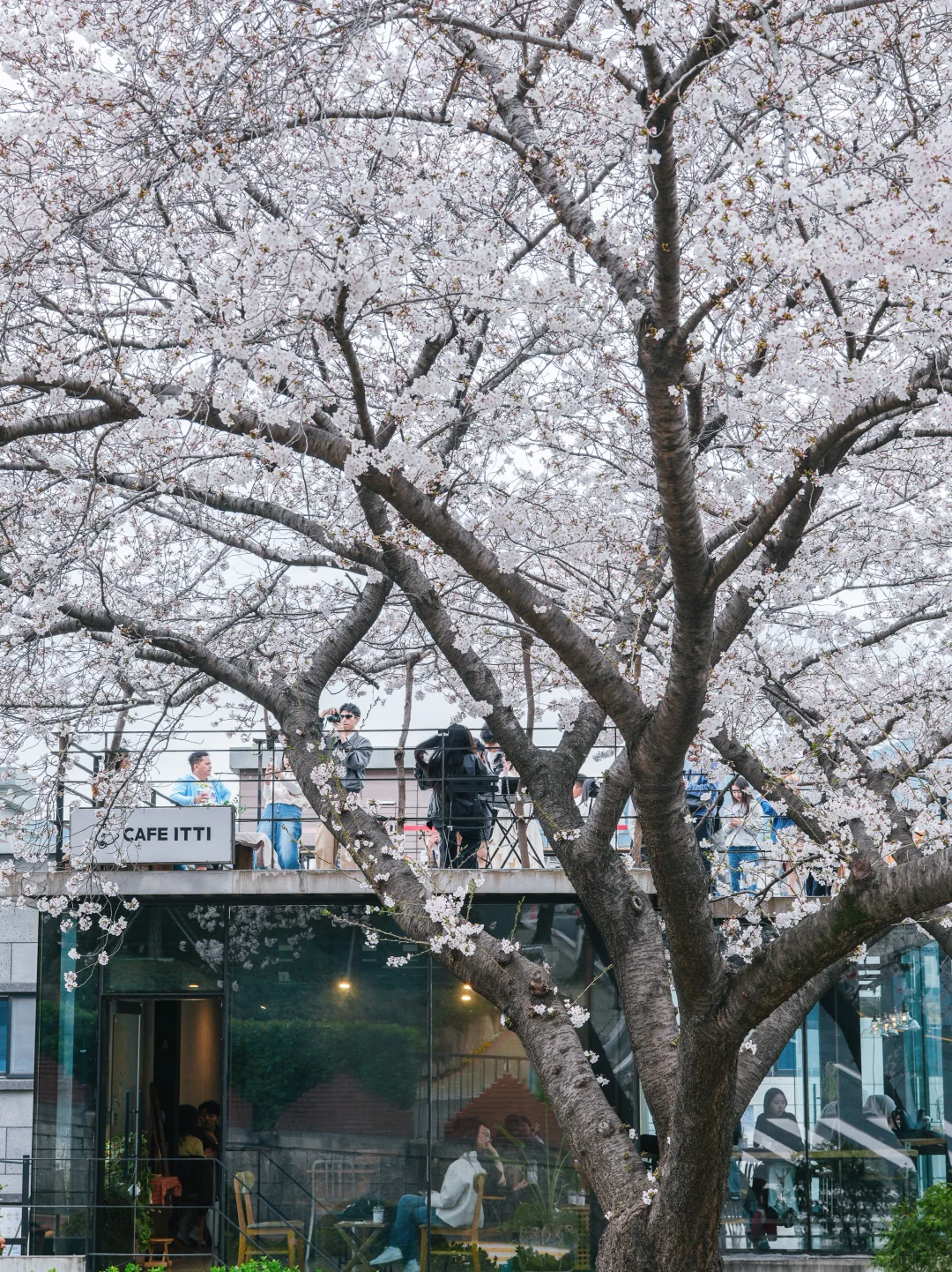 釜山春天里绝美的咖啡馆,整个咖啡馆被樱花包围,尤其是三楼露台,拍照很出片。