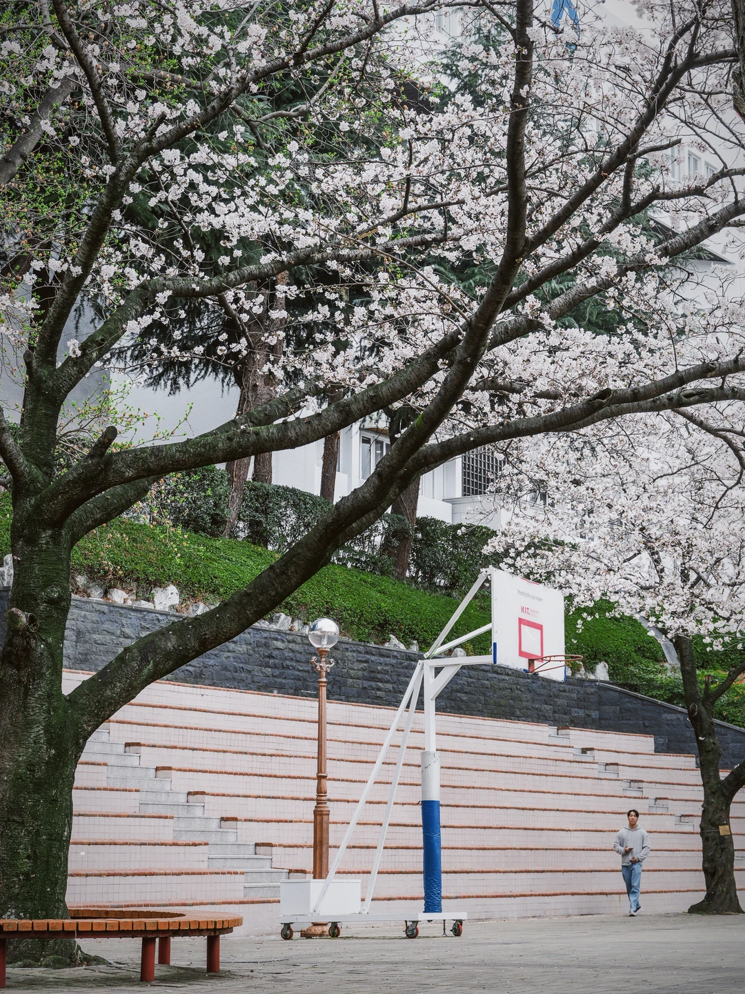 校园里到处都是盛开的樱花。