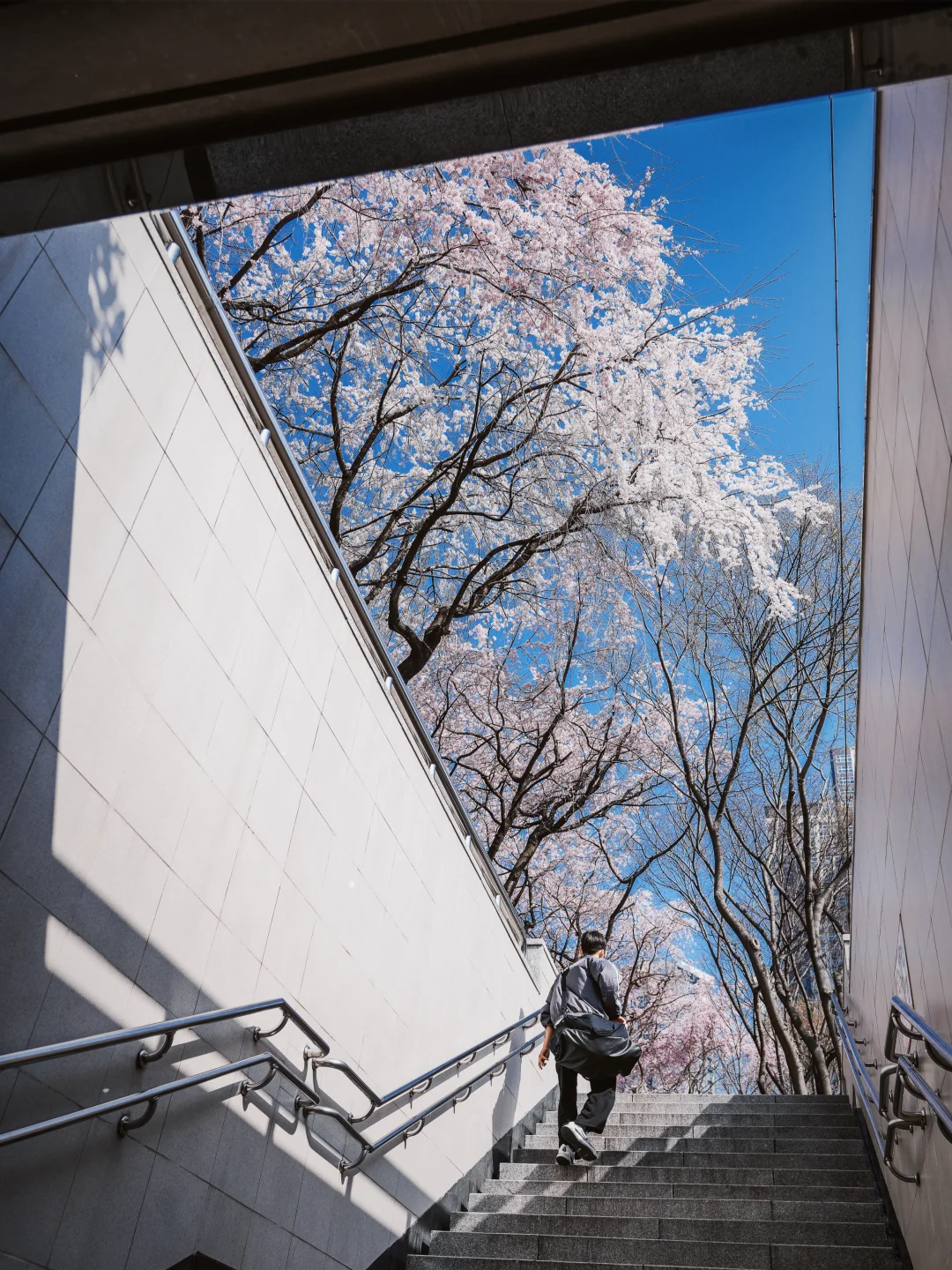盛开超60-70%,利用下沉通道轮廓构图很有意境,还有很多垂樱。