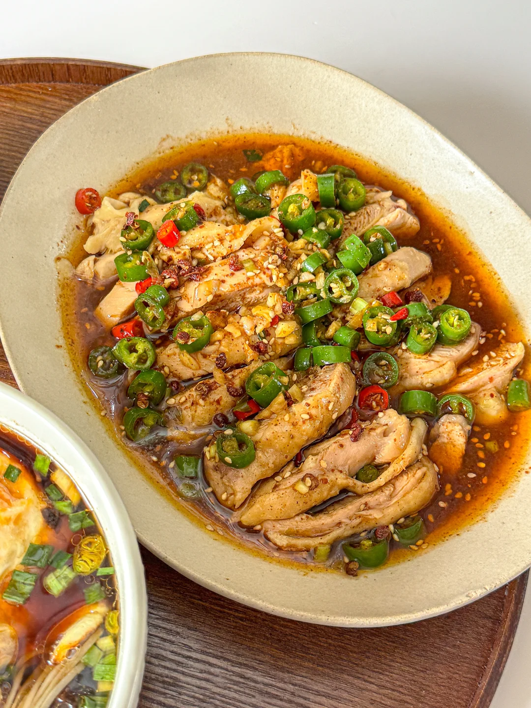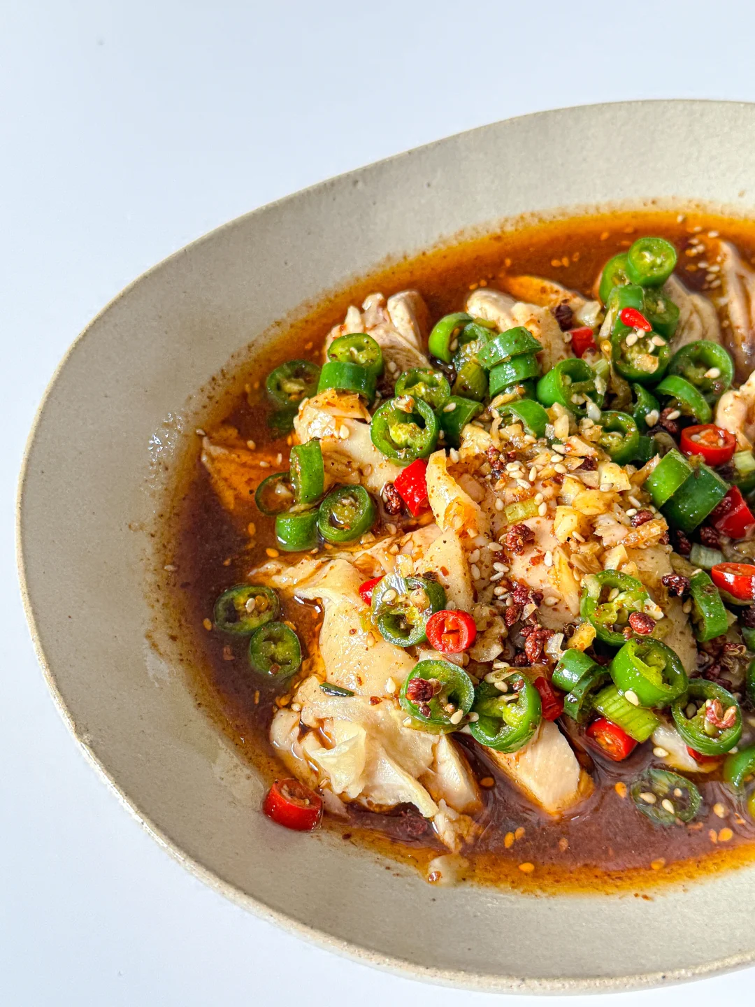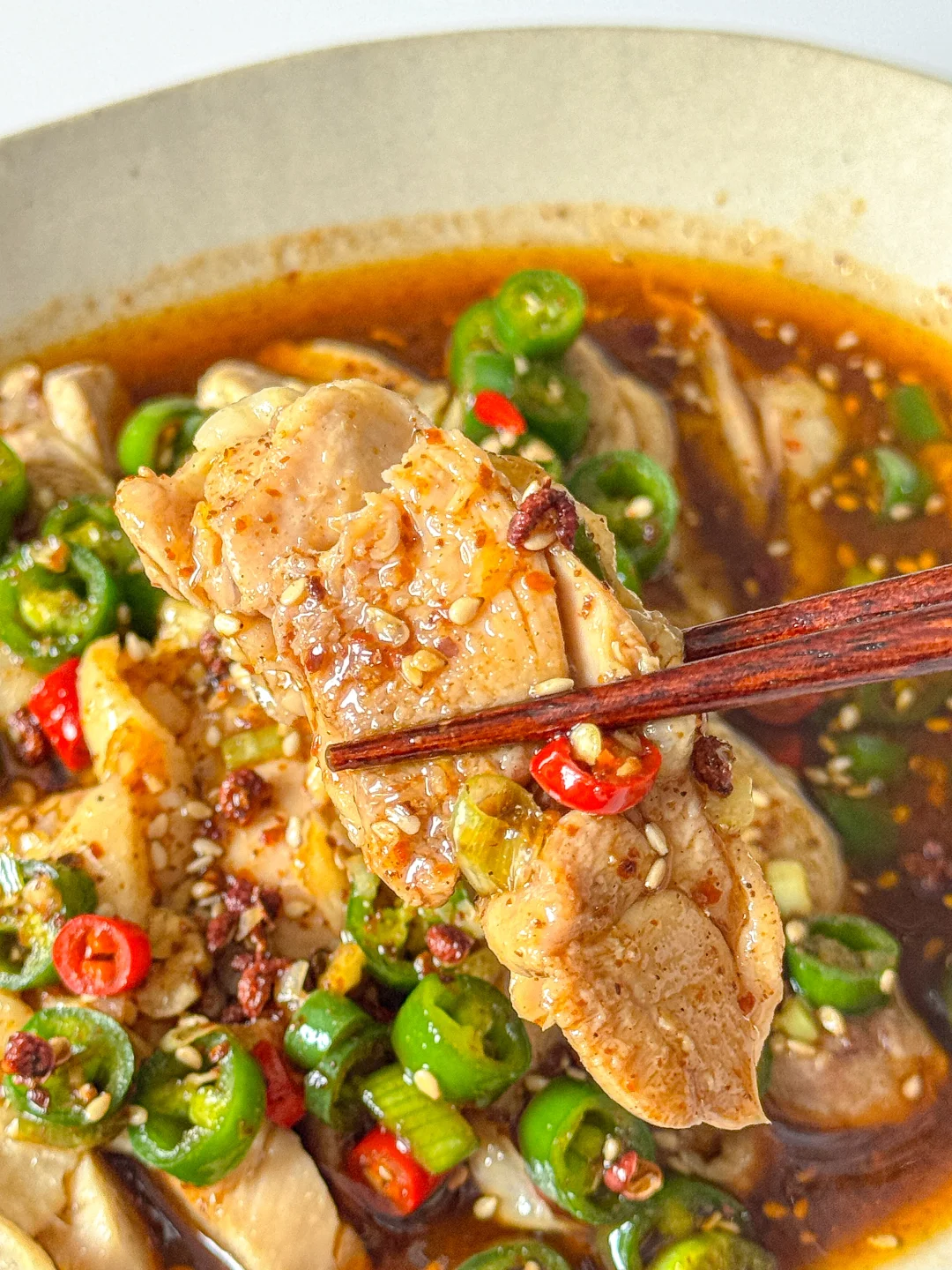 4️⃣ 一勺香油、一勺花椒油,最后加两勺煮肉的汤