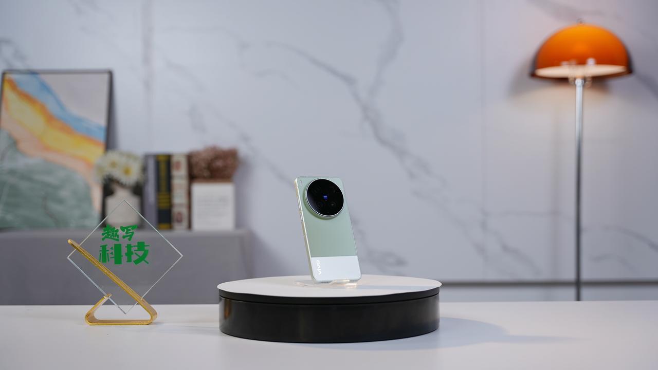 X300 Ultra专业V单 先让大家看看真机。 我们手中的胶片绿是一种低饱和、奶油质感的绿色,融入了一点点灰调,这种拼接自带一种复古、文艺的既视感