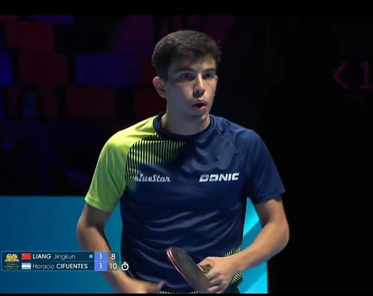 ITTF澳门单打世界杯曝出冷门!世界男单第13名的梁靖崑,输给了阿根廷球员西恩福特斯。 本次赛事,西恩福特斯是阿根廷唯一参赛的球员,但他敢打敢拼,没有包袱,落点很刁钻,防守反击速度很快。 梁靖崑苦战五局,最终2-3告负,比分为:11-5、7-11、8-11、11-4、8-11