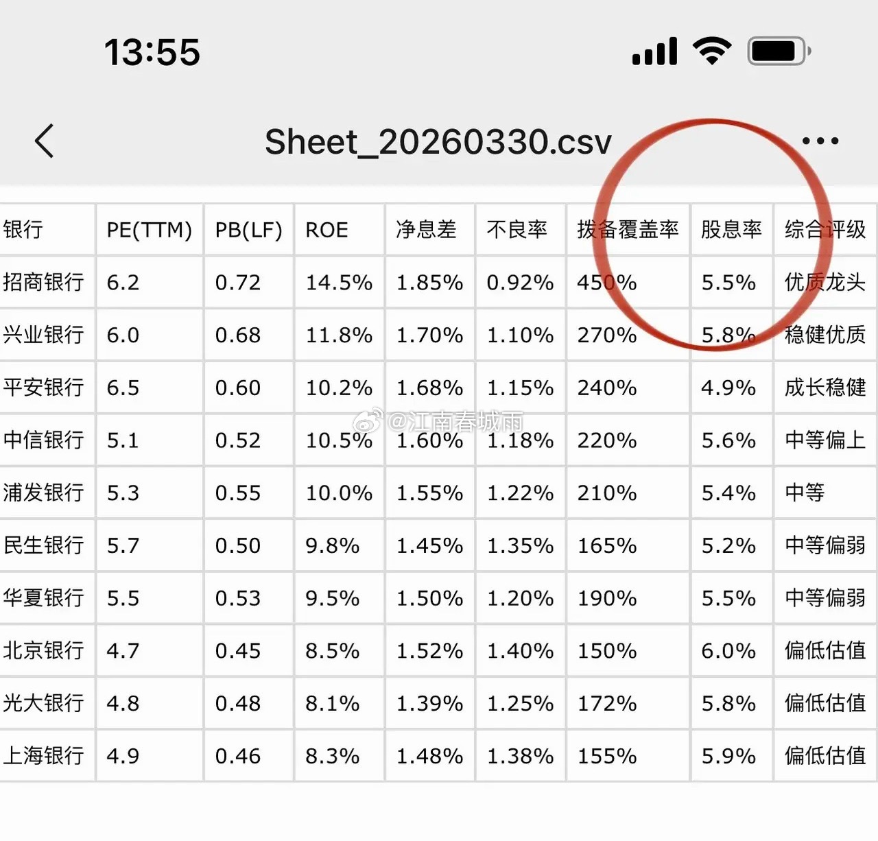 避险情绪推动大资金流入银行避险!建设银行和中国银行接近收复前高,本轮外围不确定性以来两大银行反弹超10%,农业银行前面更强所以调整更深一些,目前是回踩年线的反击。当然也有浦发银行和民生银行牛后,又跌成熊样的非优质筹码。三千试着用银行评判的四个指标:ROE、净息差、拨备覆盖率、不良率,让豆包排出高股息股,招商银行仍然最优质,还有点意思哈