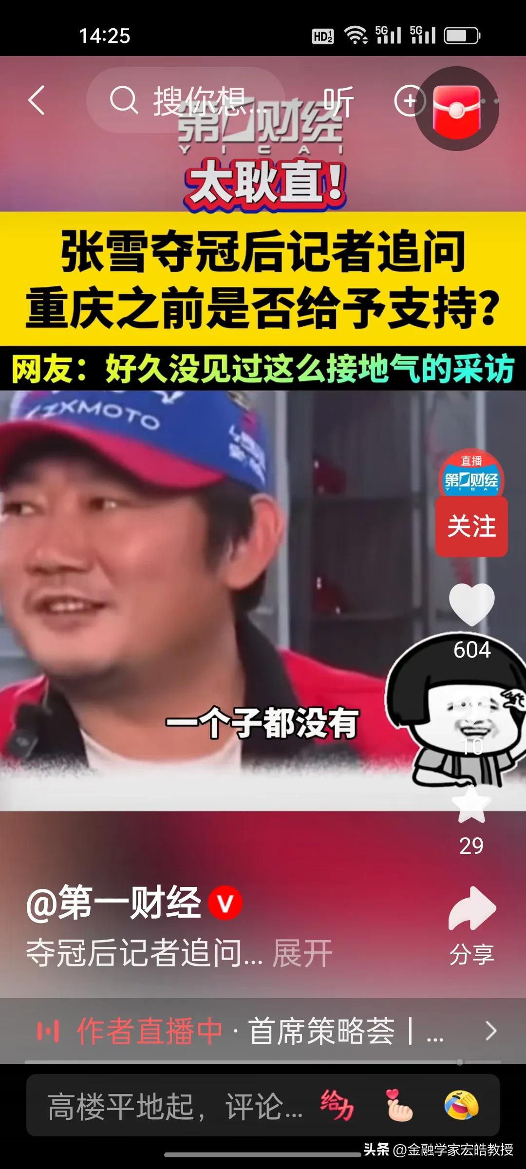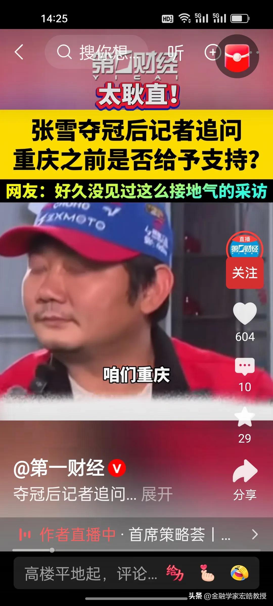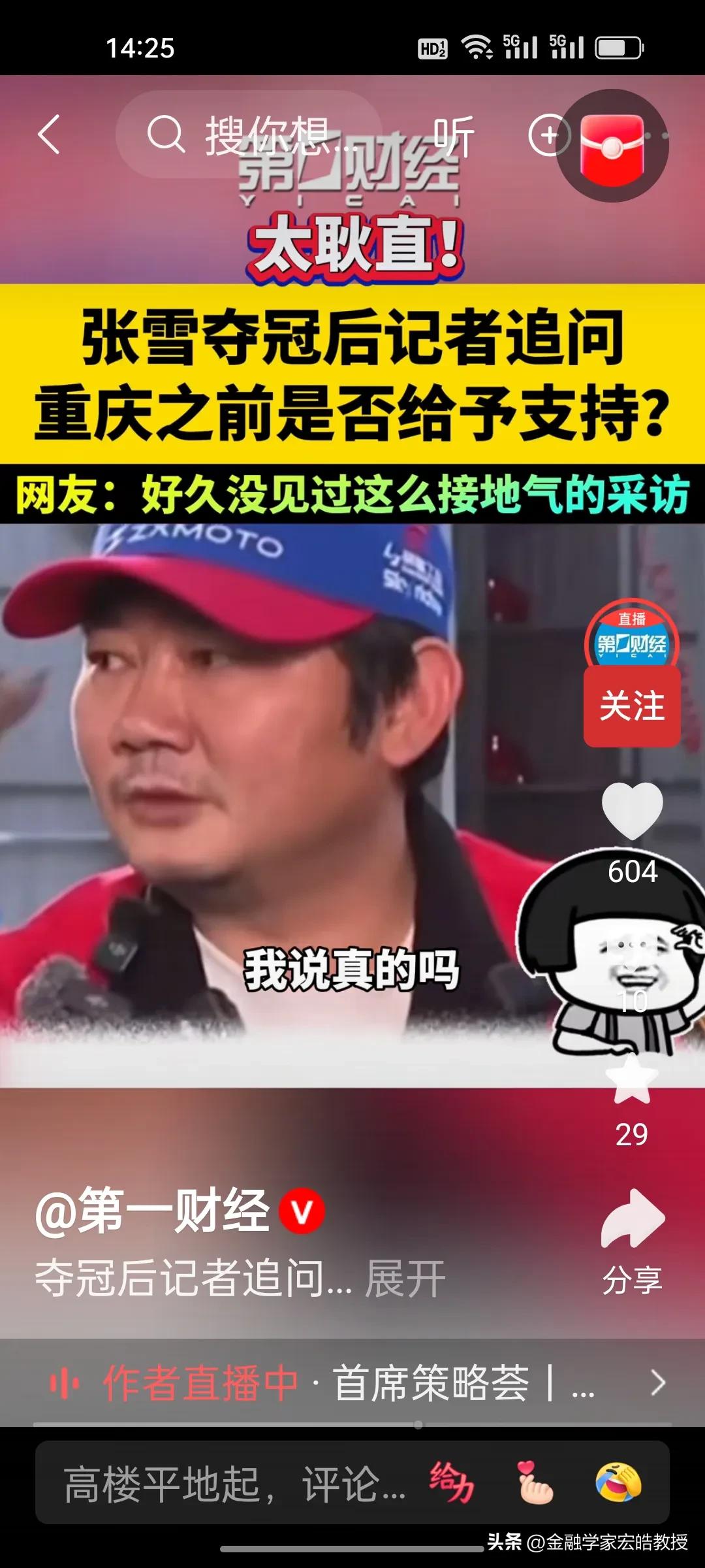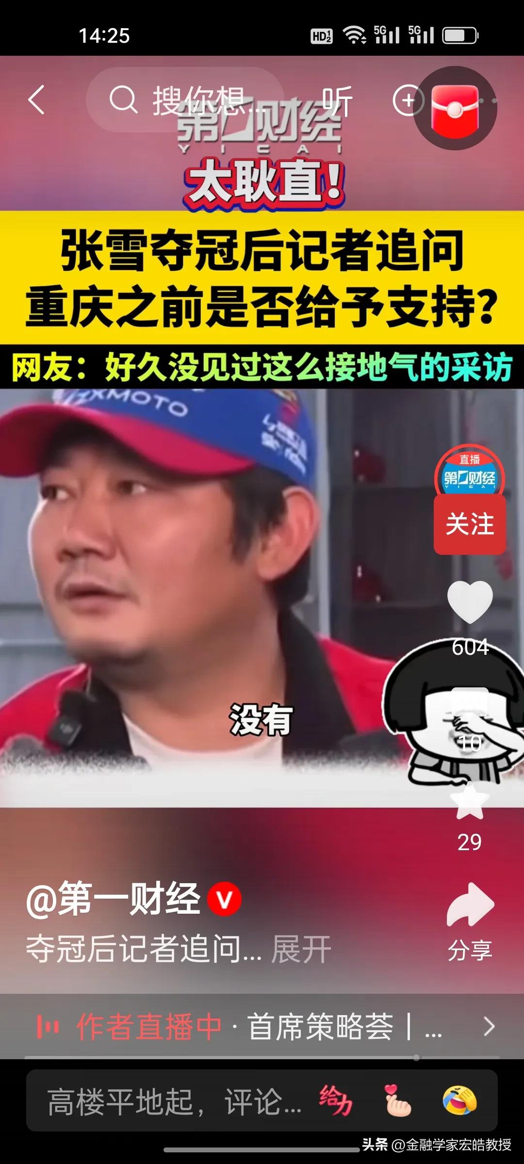 张雪真的太实诚!刚刚看到《第一财经》的一个视频中,记者追着问张雪:“咱们重庆给了您哪些政策、人才支持?” 张雪愣了一下,直接实话实说:“我说真的吗?没有,一个子都没有!” 没有场面话,没有假大空,没有把功劳往地方上靠,就这么一句大实话,直接戳中了所有创业者的心声。 2013年,26岁的张雪揣着2万块钱只身闯重庆,没有厂房、没有团队、没有人脉,全靠一身技术在论坛接改装单起步。从修车学徒到世界冠军,从凯越机车到WSBK双冠王,他用13年时间,把中国摩托干到了世界之巅。 他靠的从来不是什么政策扶持,而是自己在油污里摸爬滚打、在赛道上摔了又爬起来的死磕。 值得一提的是,浙江国资早在张雪夺冠前3个月,用9000万精准押注了这位“靠自己拼出来的世界冠军”,赚足了口碑,完美踩中了中国摩托崛起的风口。 当然,我敢说,这次WSBK双冠之后,重庆绝对会给张雪、给中国摩托产业,补上最实在的政策支持。毕竟,这样靠自己拼出来的世界冠军,才是最值得被托举的底气!