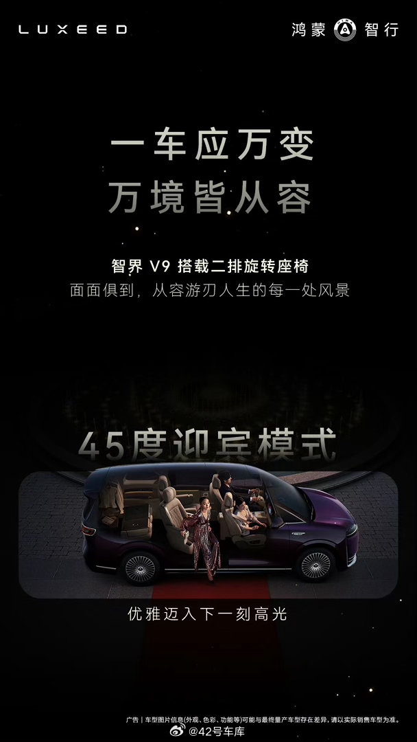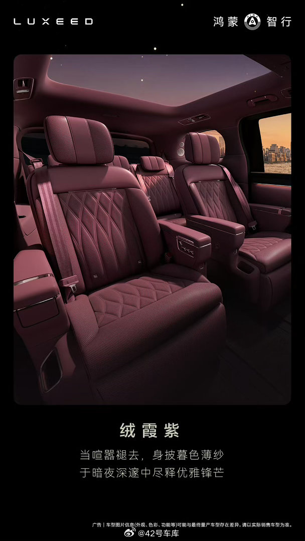智界 V9 的消息越来越多了,今天有三个内饰颜色公布,紫色内饰看着很高级啊