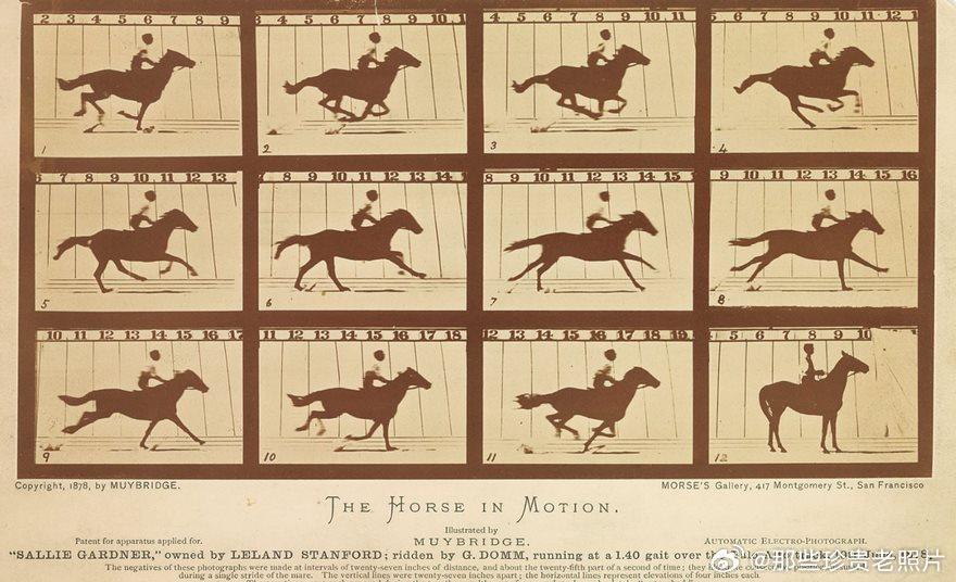 迈布里奇在赛马跑道旁架设了12台(后升级为24台)连续触发的相机,用马奔跑时拉断的细绳触发快门,以约1/25秒的间隔,捕捉到了马完整的奔跑步态。