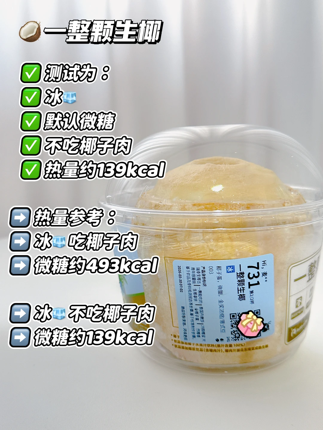 测试为:冰🧊默认微糖 不吃椰肉 约139kcal