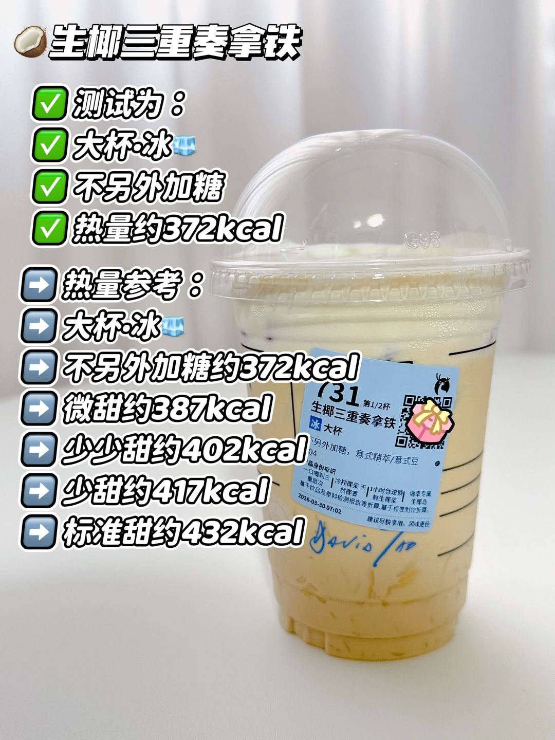 测试为:冰🧊不另外加糖 热量约372kcal