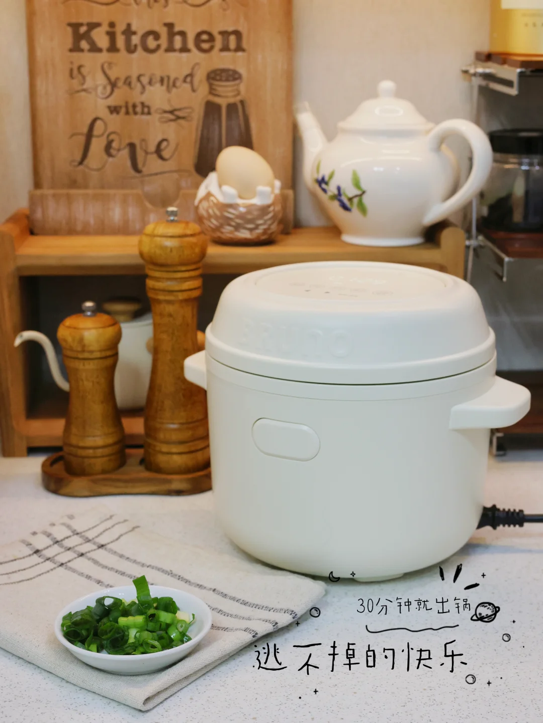 BRUNO小饭墩真的是小户型/独居神器!煮饭、煮粥、煲汤、蒸煮全搞定,一锅多用不占地方,颜值还高,放在厨房都像件小摆件~谁能拒绝一台能随时煲出暖心热汤的小饭墩啊!