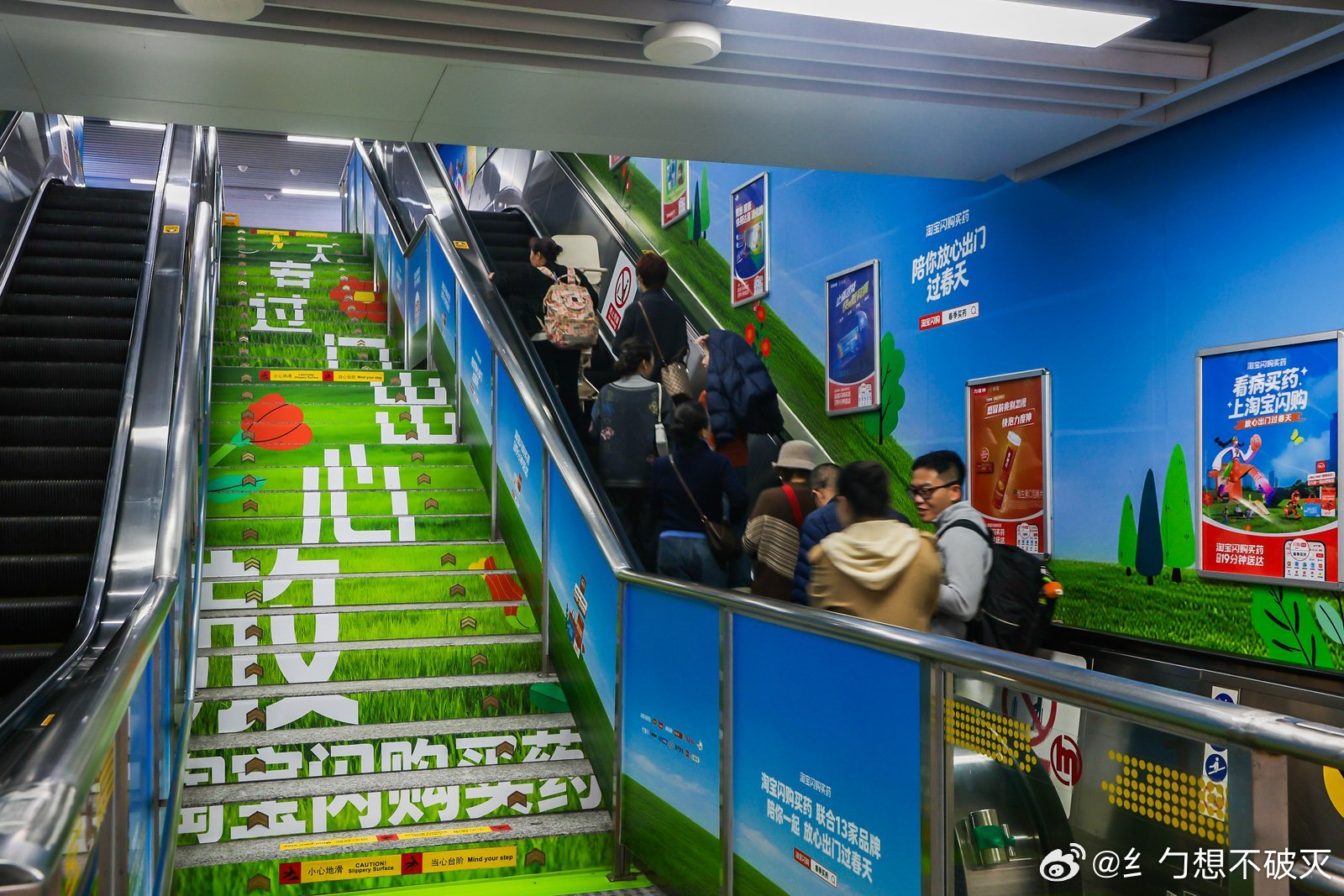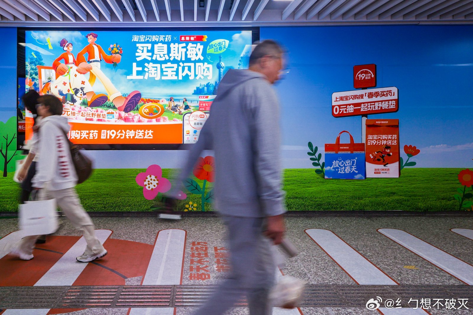 淘宝闪购买药放心出门过春天出门忘带鼻炎药,在杭州地铁武林门站C口看到墙贴提醒,打
