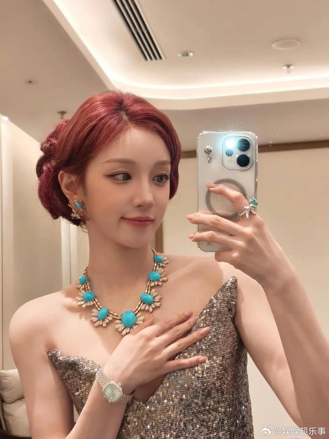 感觉雨琦第一套珠宝和礼服不是很搭,第二套和谐很多