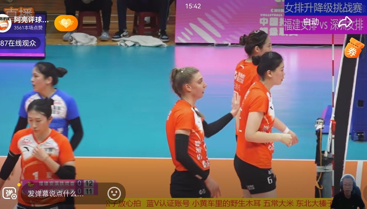 【女排超级联赛】升降级赛:福建——深圳 实时战况: 3月31日下午15:30分,女排超级联赛升降级赛福建——深圳的比赛在福建队主场打响。第—局开始,1:3,深圳领先。2:3,3平,福建追平。4平,4:6,深圳领先。5:6,6平,福建吊球追平。7:6福建反超。7平,深圳后攻。8平,10:8福建反超。11:8,庄宇珊打探头,深圳暂停。12:10,13:11,14:12,庄宇珊打手出界。14:13,14平,深圳追平。14:15福建失误。15平,16平,17平,双方互送发球。18平,19平,20平,庄宇珊。21平,双方紧咬比分。22:21,深圳暂停。22平,23平,24:23,局点。25:23庄宇珊扣球胜第—局,大比分1:0,福建领先! 第二局比赛正在进行中……