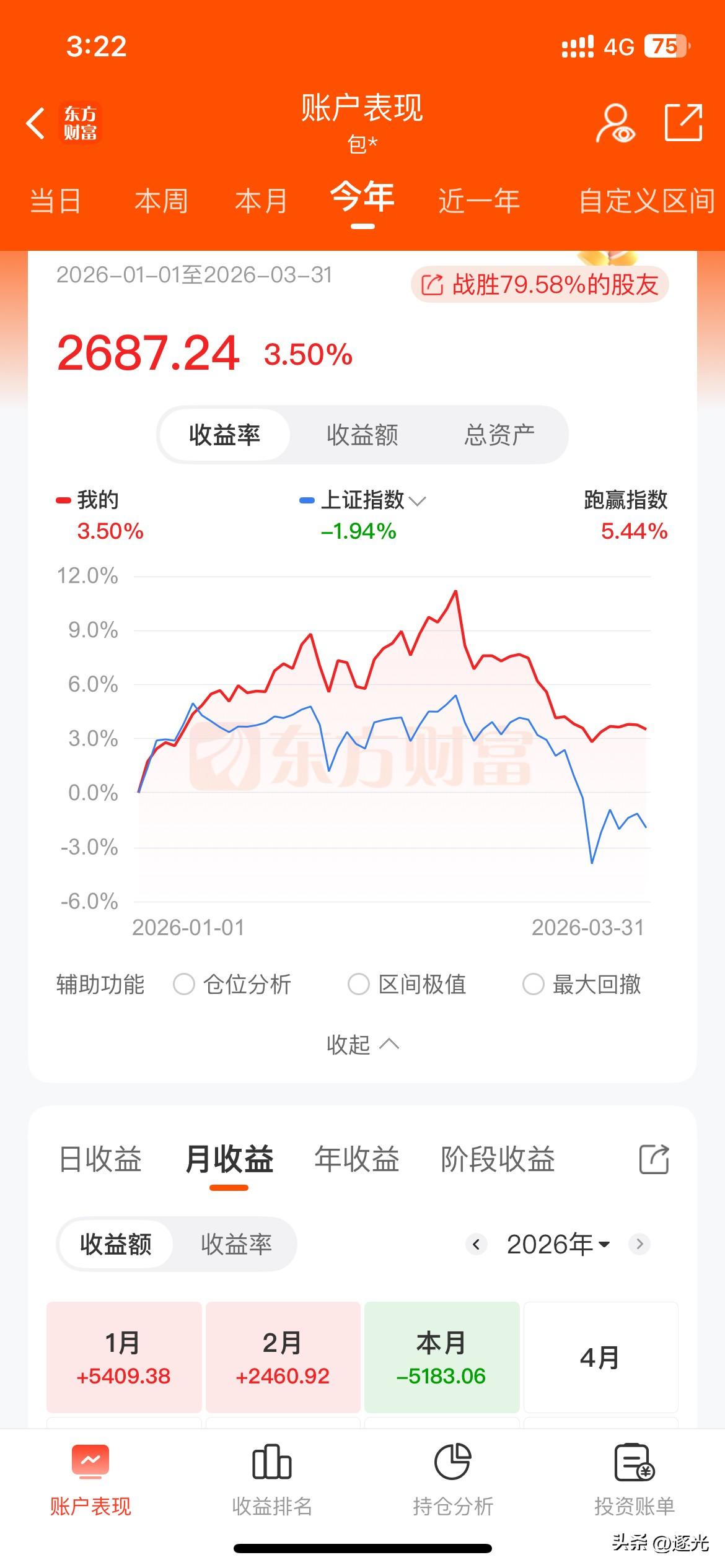 3月结束了,每一天都在煎熬。历史上没有像这个月几乎天天扣款。亏出了天际,残暴的2026年3月份,一片绿油油。防止股市大起大落仅成为口号。今天本月最后一天,也不忘再扣一天款。本月我跑赢了大盘,多亏仓位很低,不是水平高。今年硕果仅存渣渣[捂脸],伊朗局势不明朗,不要指望股市转好。