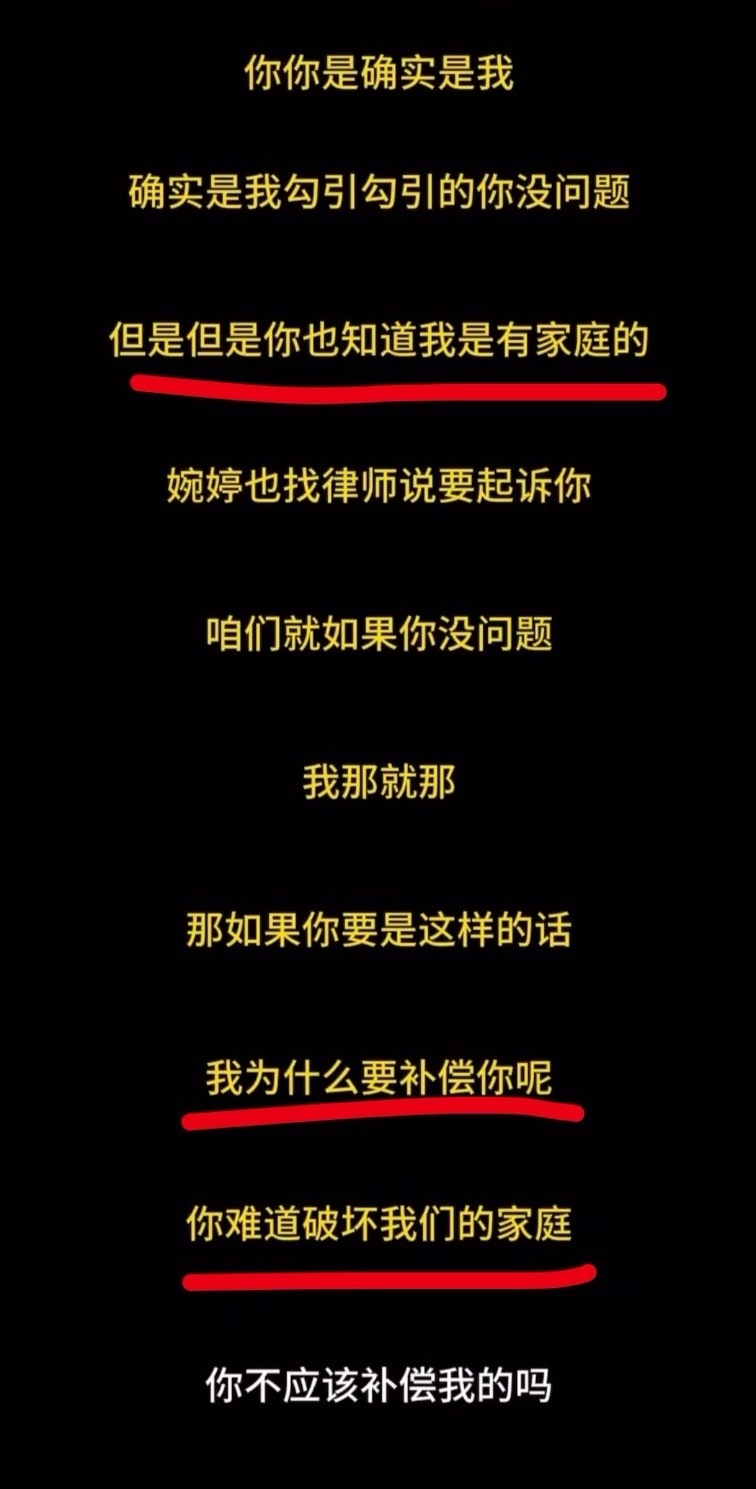 宋宁峰疑带着女儿出轨 文字版来黄色字是宋宁峰,白色字是出轨对象图9宋宁峰知道自己有家庭了,觉得出轨对象是在破坏自己的家庭