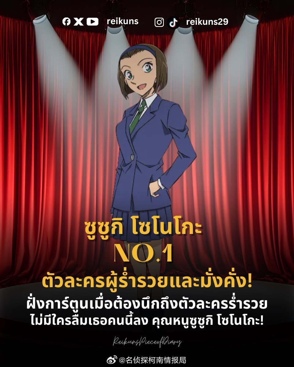 铃木园子获得最富有动漫角色第一名!名侦探柯南