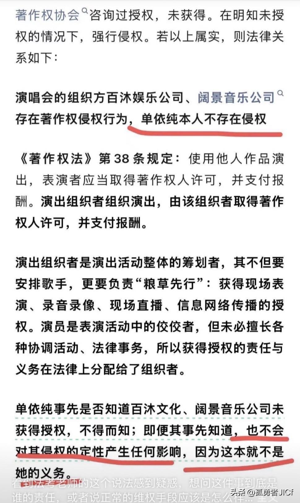 她就是个表演者,上台唱歌而已,根本没义务去管版权授权的事。