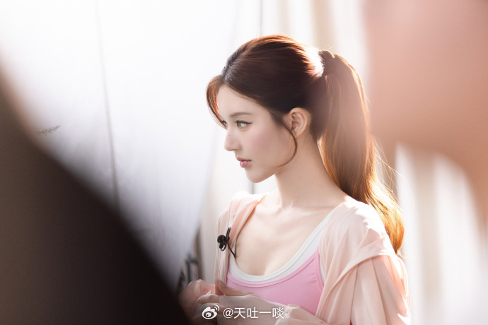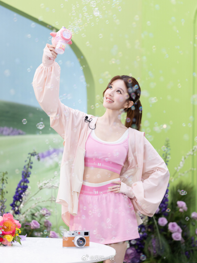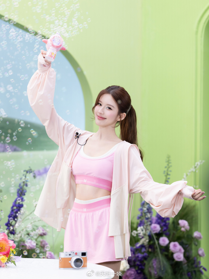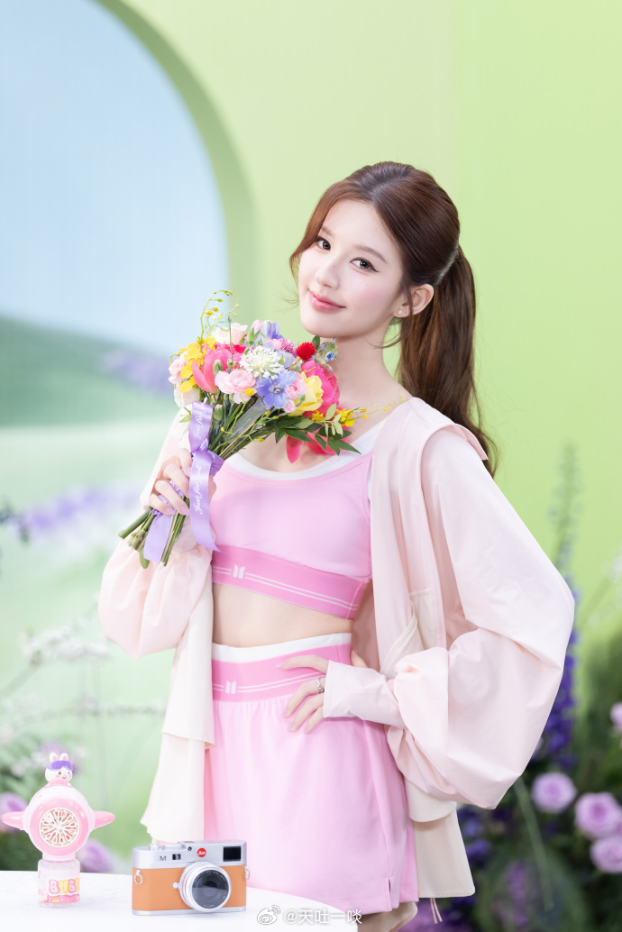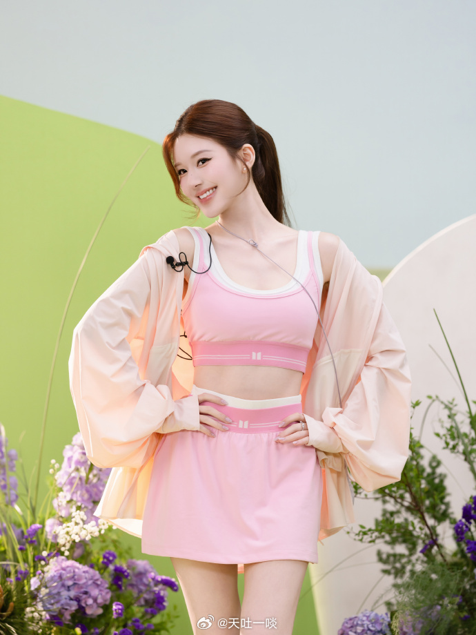 粉色运动套装、笑眼盈盈活力四射——赵露思。每日明星美图分享