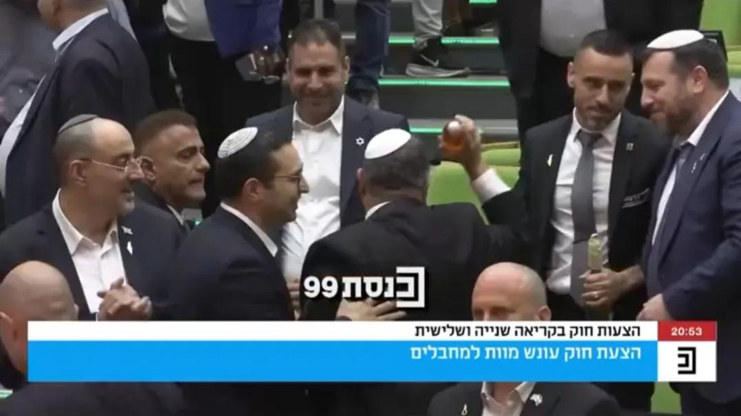 以色列议会以62票赞成、48票反对的表决结果,通过了一项死刑法案,授权法官对其认定实施“致命袭击”的约旦河西岸巴勒斯坦人判处死刑。而且判处死刑无需“合议庭”的法官一致同意,仅需简单多数即可。此外,法案还规定,由以色列监狱管理局在法院判决作出后90天内执行死刑,且不设上诉权。 这项死刑法案是以色列国家安全部长本-格维尔领导的“犹太力量党”推动的。死刑法案通过之后,本-格维尔欣喜若狂,在以色列议会大厦外喝酒庆祝。本-格维尔表示:“很快我们将一个一个地清算他们。” 以色列这种法西斯手段,使其和巴勒斯坦之间的仇恨越结越深。