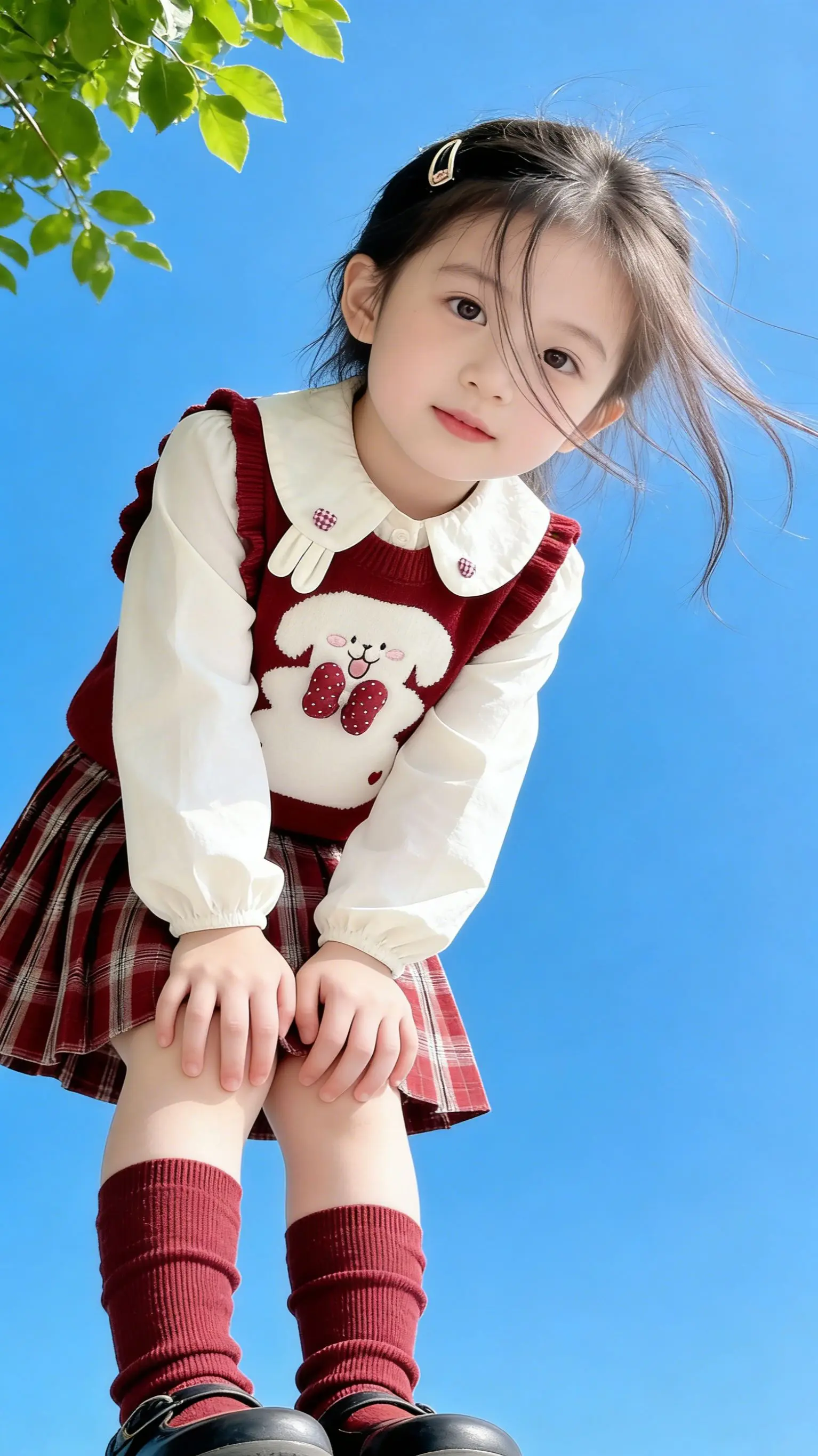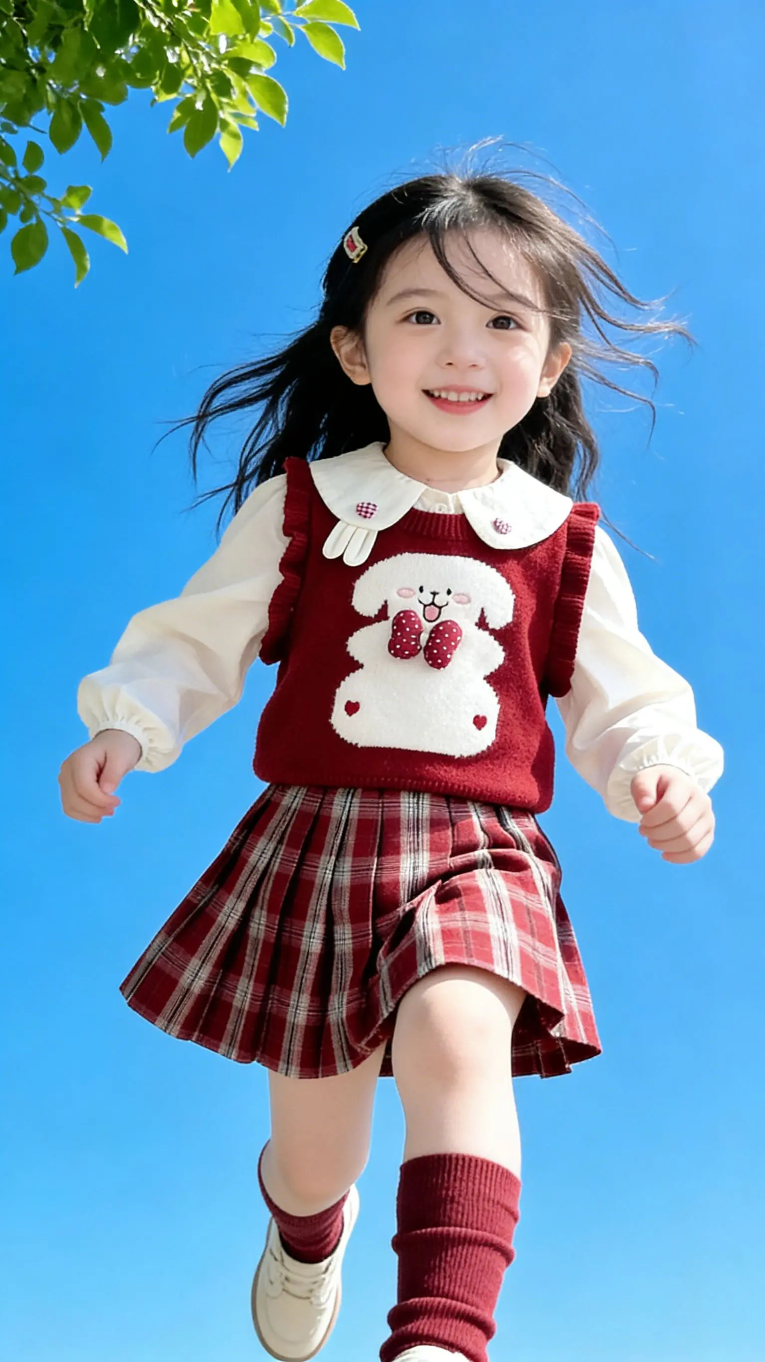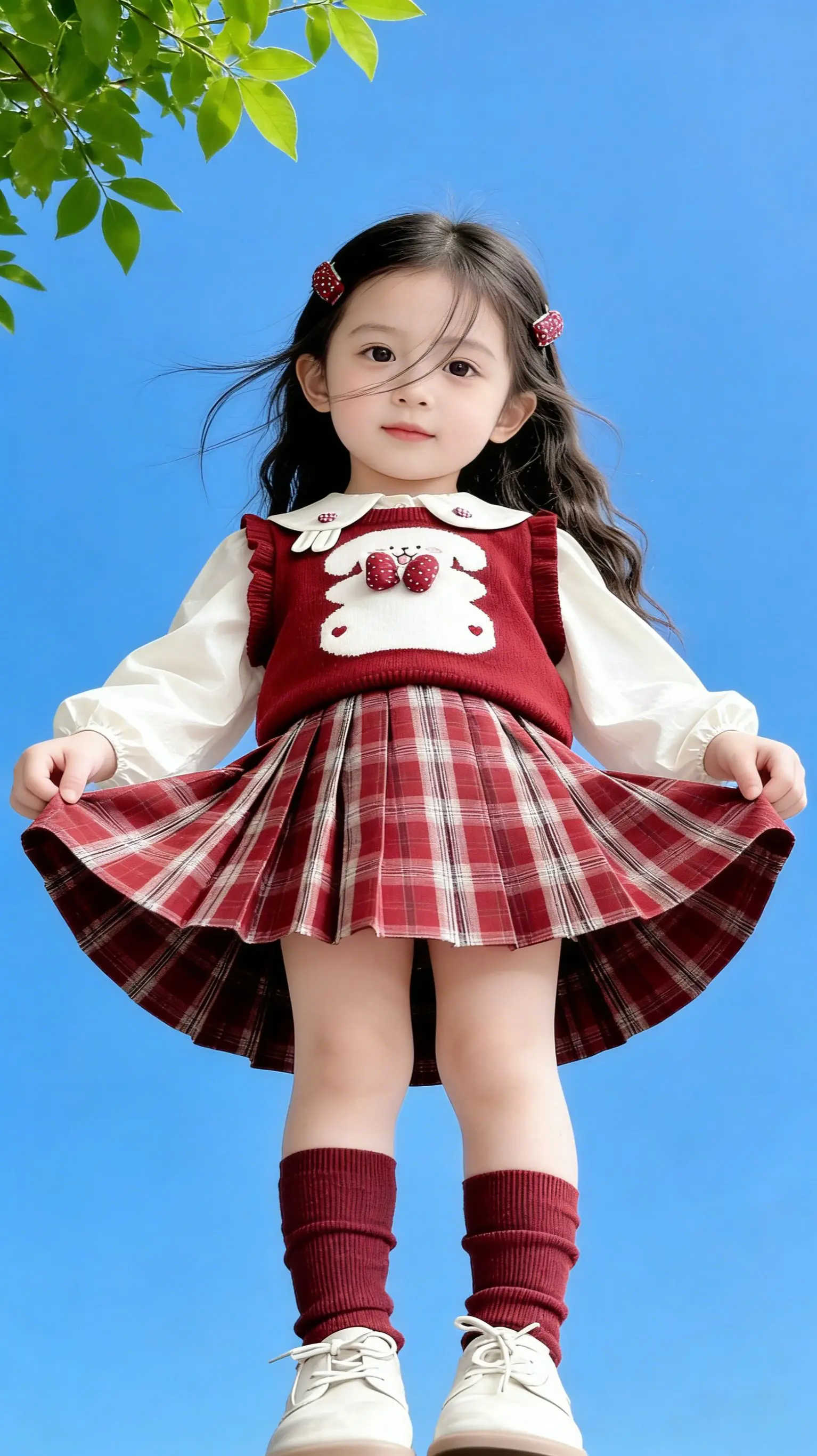 被问爆了!女童这套安可拉红JK也太绝了 今日份含糖量超标!红白色系元气...
