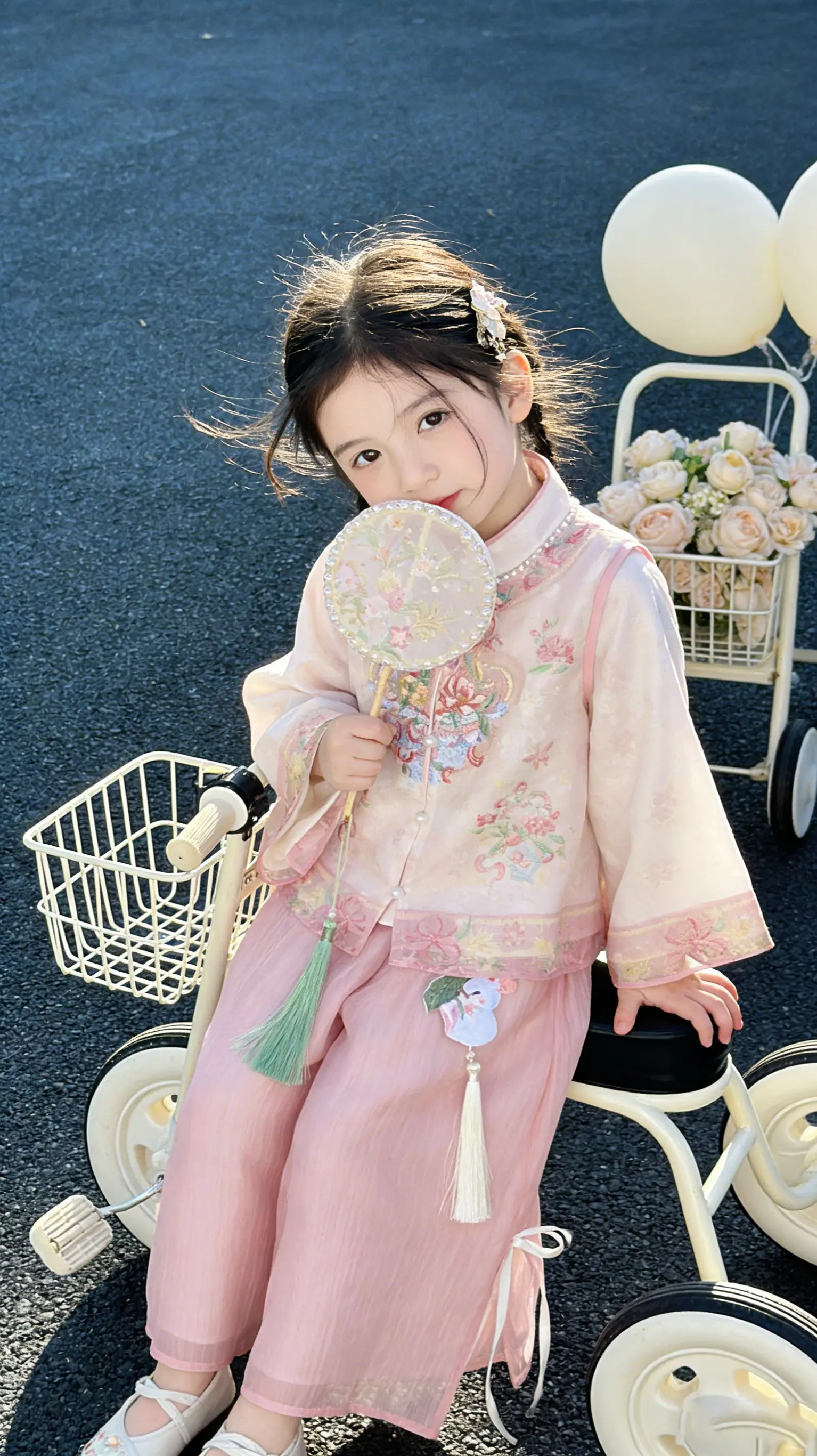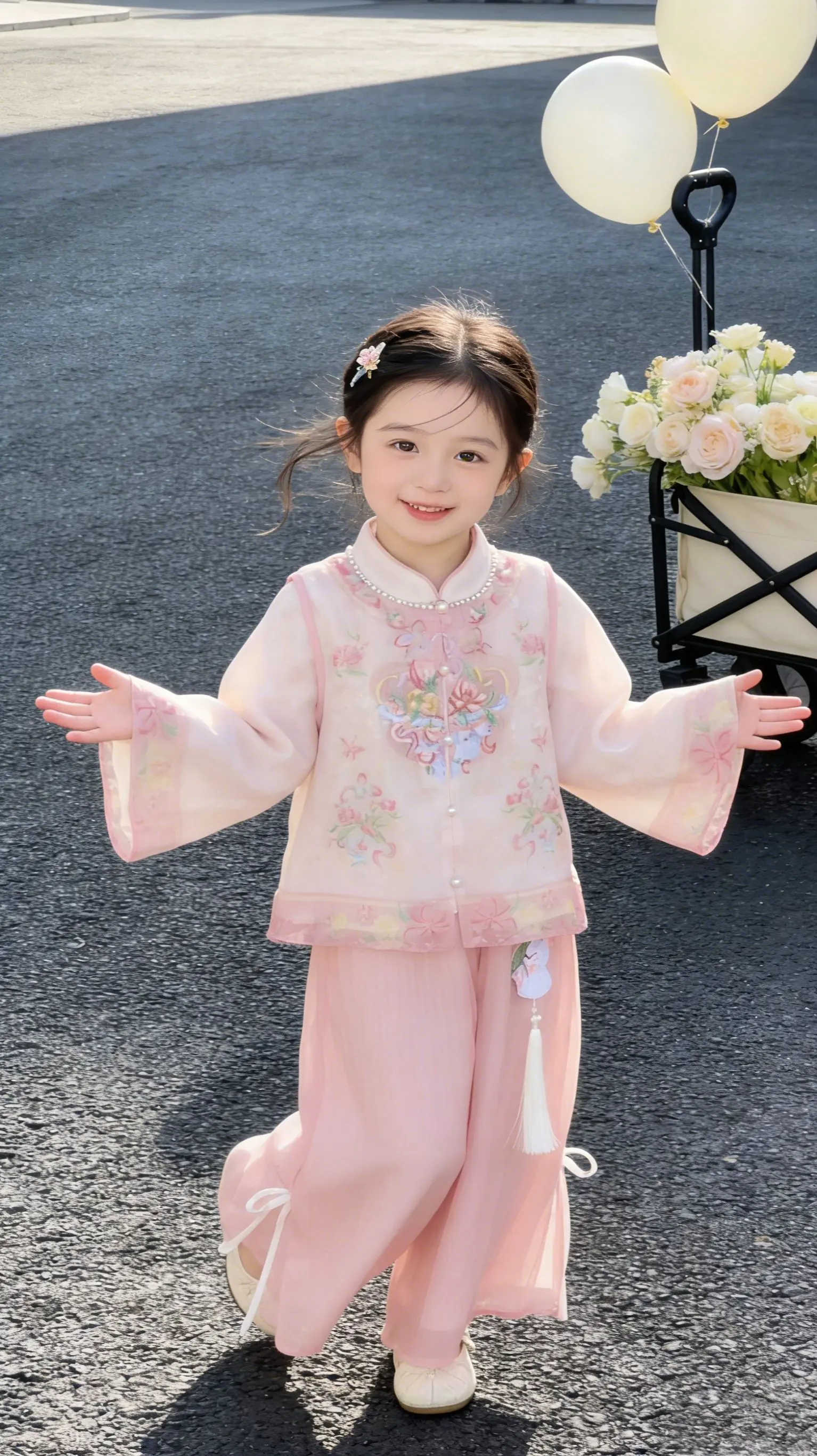 温柔治愈风~创作者中心 创作灵感 叮!你的国风小甜妹已上线~ 粉粉嫩嫩的新中式套装也太乖了吧! 精致的花朵刺绣+飘逸的阔腿裤 跑起来的时候裙摆都在发光✨ 珍珠立领+流苏小挂饰 细节拉满,氛围感直接拉满!