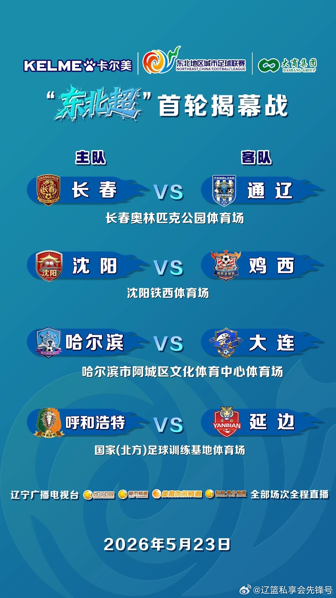 3月30日,东北超抽签仪式在沈阳举行新华网,八队落位 A、B、C、D 四组,5月23日首轮开赛。赛事同步推出吉祥物 “虎哥”、官方用球,并启动小微企业 “0元赞助” 计划,文体旅商全面联动。