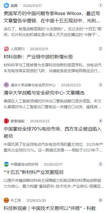 美国军方的东大问题专家发出了警告:中国最新的五年规划里,以前常提的“光刻机”、“芯片”这些词,一次都没出现,可美国现在整天琢磨的,还是怎么卡住这些具体设备和技术的脖子。这位专家觉得,这种认知错位很危险,因为中国竞争的思路,可能已经彻底换了。 麻烦看官老爷们右上角点击一下“关注”,既方便您进行讨论和分享,又能给您带来更多优质的内容,感谢您的支持! 美国军方一位专门研究东大问题的专家写了一篇文章,在华盛顿的圈子里引起了不少震动。这位专家发现了一个值得警惕的现象:在中国最新公布的“十五五”规划草案里,以前频繁出现的“光刻机”、“芯片”这类具体技术词汇,这次居然一次都没出现。可现在的美国呢?还在那儿天天琢磨怎么卡这些设备和技术的脖子——这个芯片不让卖,那个光刻机不让出口。这位专家认为,这种认知上的错位非常危险,因为中国竞争的思路可能已经彻底换了赛道。 说实话,这事儿挺有意思的。前几年“十四五”那会儿,“芯片”和“光刻机”确实是咱们天天挂在嘴边的词儿。那时候大家心里都清楚,这是被卡脖子的地方,得想办法补上这块短板。整个社会对这事儿关注度极高,从国家到企业都在使劲儿攻关。可到了“十五五”,这些关键词居然从规划里消失了。这难道是中国放弃了吗?恰恰相反,这位专家的判断是,这很可能意味着这事儿已经从“攻坚目标”变成了“基础设施”。 咱们打个通俗的比方:你会在自家的年度计划里专门写一条“今天记得呼吸”吗?不会。只有在你喘不上气的时候,呼吸才会被当成头等大事。一旦呼吸顺畅了,它就变成了默认背景。中国把这些词从规划里拿掉,背后的逻辑可能是:最难的那道坎儿要么已经迈过去了,要么已经有了成体系的替代方案。这就有意思了——美国现在还拿着几年前的“地图”在搞封锁,每天研究怎么卡死你的光刻机,结果回头一看,对方的导航已经切到了下一个目的地。 那么,中国“十五五”的导航地图上到底画了什么?答案是算力。在“十四五”规划里还没怎么被提及的算力,这次被单独列了整整一章。规划文本里还出现了一个新词叫“模芯云用”,说白了就是围绕大模型、芯片、云端和应用做系统性的架构设计。这个变化透露出来的信号很明确:中国的战略目标不再是单纯地造出一颗芯片,而是要构建一个包含芯片在内的系统性生态。芯片只是最底层的基础物理层,上面还有AI模型、云基础设施以及终端应用部署。 这叫什么?这不叫“换道超车”,这叫“起底重构”。衡量成功的标尺正在从“能制造多少颗芯片”转向“算力基础设施渗透国民经济的深度和广度”。与此同时,国内的一批半导体龙头企业高管和学者最近也集体发声,呼吁在“十五五”期间通过国家层面的协同努力,打造中国版的光刻机巨头。这些业内人士直言,目前产业还存在“小、散、弱”和内卷严重的问题,需要用“举国之力”把已经突破的关键技术整合成完整的产业体系。 华盛顿的官僚们习惯了那种打地鼠式的围追堵截,总觉得只要堵死一个点,就能让对方瘫痪。但问题在于,当一个大国不再公开讨论某种短板的时候,通常意味着这个短板已经不再是能被轻易拿捏的死穴,或者人家已经找到了从更高维度降维打击的办法。就拿新能源领域来说,中国在电动汽车、电池、储能这些方向上是同步推进的。到2025年,中国在全球电动汽车电池市场的产量已经占到约70%,全球装机产能前十的企业里有六家来自中国。 这种体系化的打法,让单一的技术封锁很难奏效。你有芯片禁令,那我就从材料科学、高端制造装备这些基础工业能力上同步发力。你有设备限制,那我就依托庞大的国内市场加速技术商业化落地。最近几年,中国的技术交易市场也迎来了爆发式增长——全国技术合同交易额从2020年的2.83万亿元跃升到了2024年的6.84万亿元,增幅超过140%。这说明什么?说明科技成果从实验室到生产线的转化速度在加快,整个创新链条在变通畅。 美国专家担心的是,如果华盛顿继续沿用围绕具体设备和技术的封锁策略,将无法有效应对中国这种体系化竞争模式的变化。说得直白点,美国还在那儿研究怎么烧对方的粮仓,结果发现人家已经学会了辟谷,或者粮仓已经变成了漫山遍野的自动化补给点。这种战略错位如果持续下去,对华政策的效果只会越来越差。这不光是这位军方专家的看法,美国国内其实也有不少反思的声音。有分析指出,过于宽泛的出口管制反而给了中国发展本土芯片制造业的动力和机会,如果向中国出售芯片,反而能让美国企业继续占据市场。 说到底,中国这种“消灭关键词”的做法,本质上是一种战略上的自信。当你的对手不再按你划定的赛道跑,甚至连赛道的名字都改了,你手里的那些制裁大棒,还能砸到谁?这才是华盛顿那些还在“芯片围堵”里自嗨的政客们,最该打个寒颤的地方。