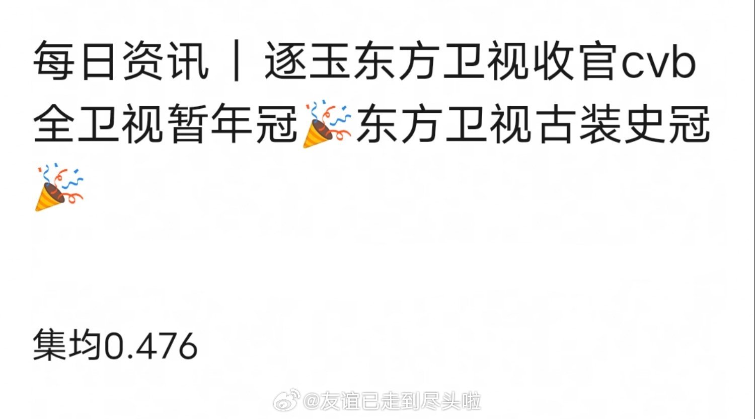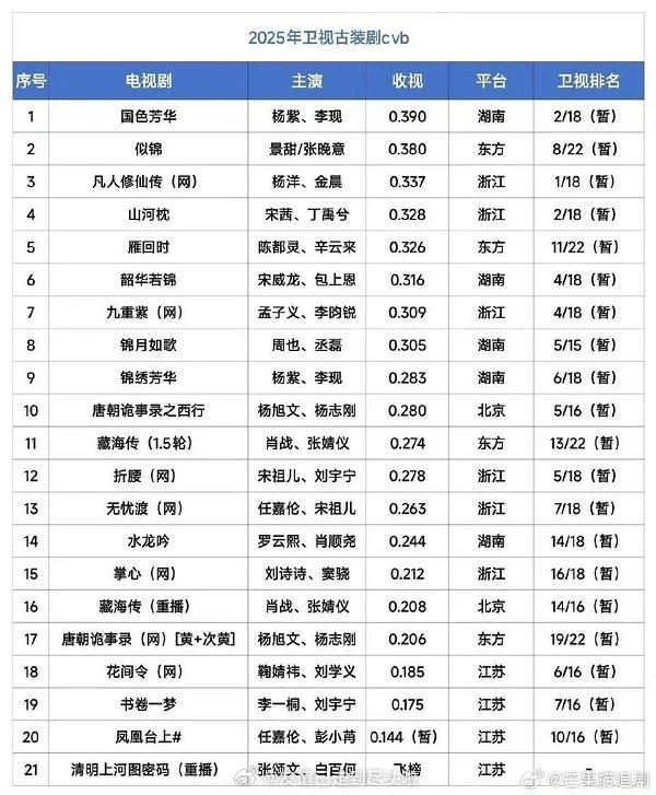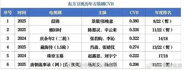 张凌赫田曦薇《逐玉》东方卫视收官,集均0.476,cvb全卫视暂年冠&古装史冠。