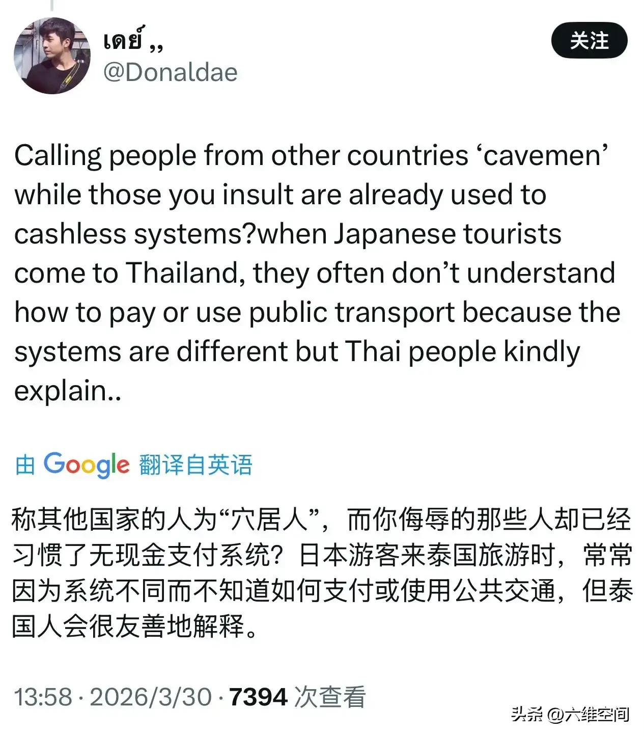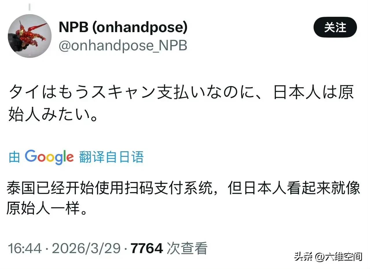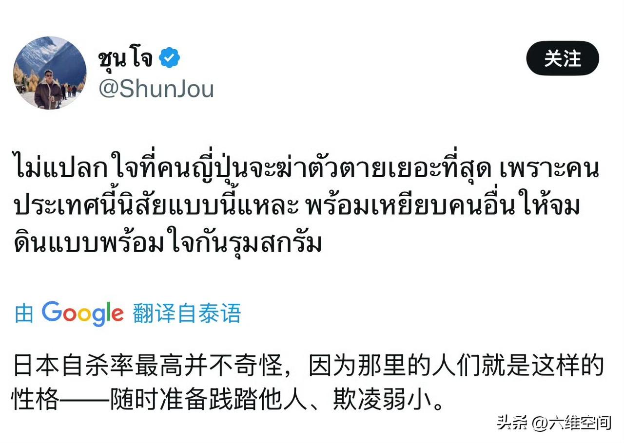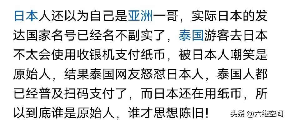 日本人看不起泰国游客,被泰国网友怒怼,日本人和泰国人在网上吵起来了,原因是泰国游客去日本有很多不懂的地方,结果日本人就把这些原本是小事的事情发到网上嘲笑,泰国网友怒怼日本人,作为一个旅游的地方,外地人去肯定有很多不懂的地方,日本作为东道主,理应服务好,日本人却高高在上,发到网上嘲笑,比如说什么泰国不会用日本的纸币机付款,实际是泰国跟中国一样,已经普及扫码支付了,所以泰国人跟中国人一样,很多都不用纸币了,去到日本使用纸币机付款,肯定是不太懂怎么弄的,结果日本人发到网上嘲笑泰国人落后,实际落后的是日本不是泰国,泰国网友肯定生气了,所以怒怼日本人,泰国网友感慨难怪日本的自杀率高,这种死板的生活,到处都是条条框框,而且人心冷漠,随时准备践踏他人和欺凌弱小,表面上的假客气和假礼貌,掩盖不了内心的扭曲和病态!