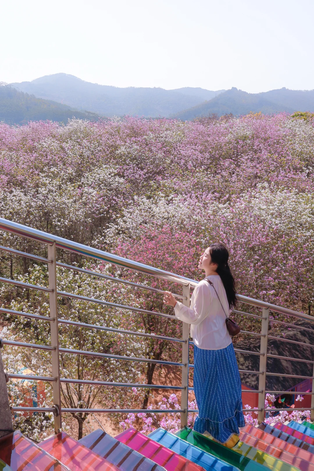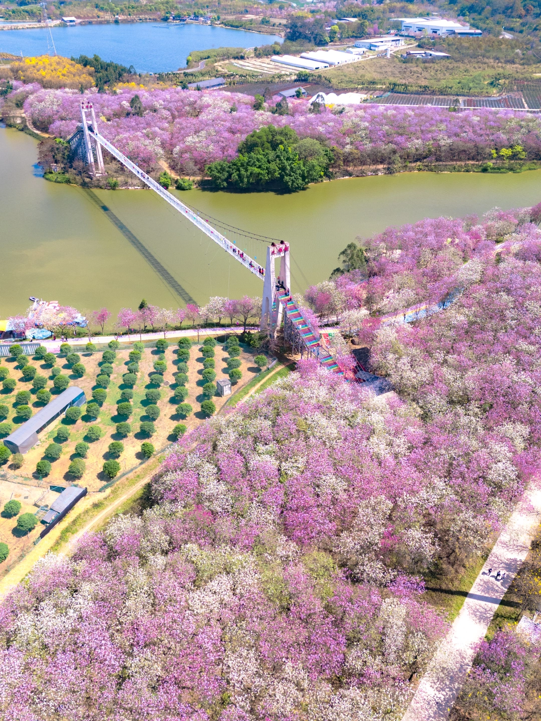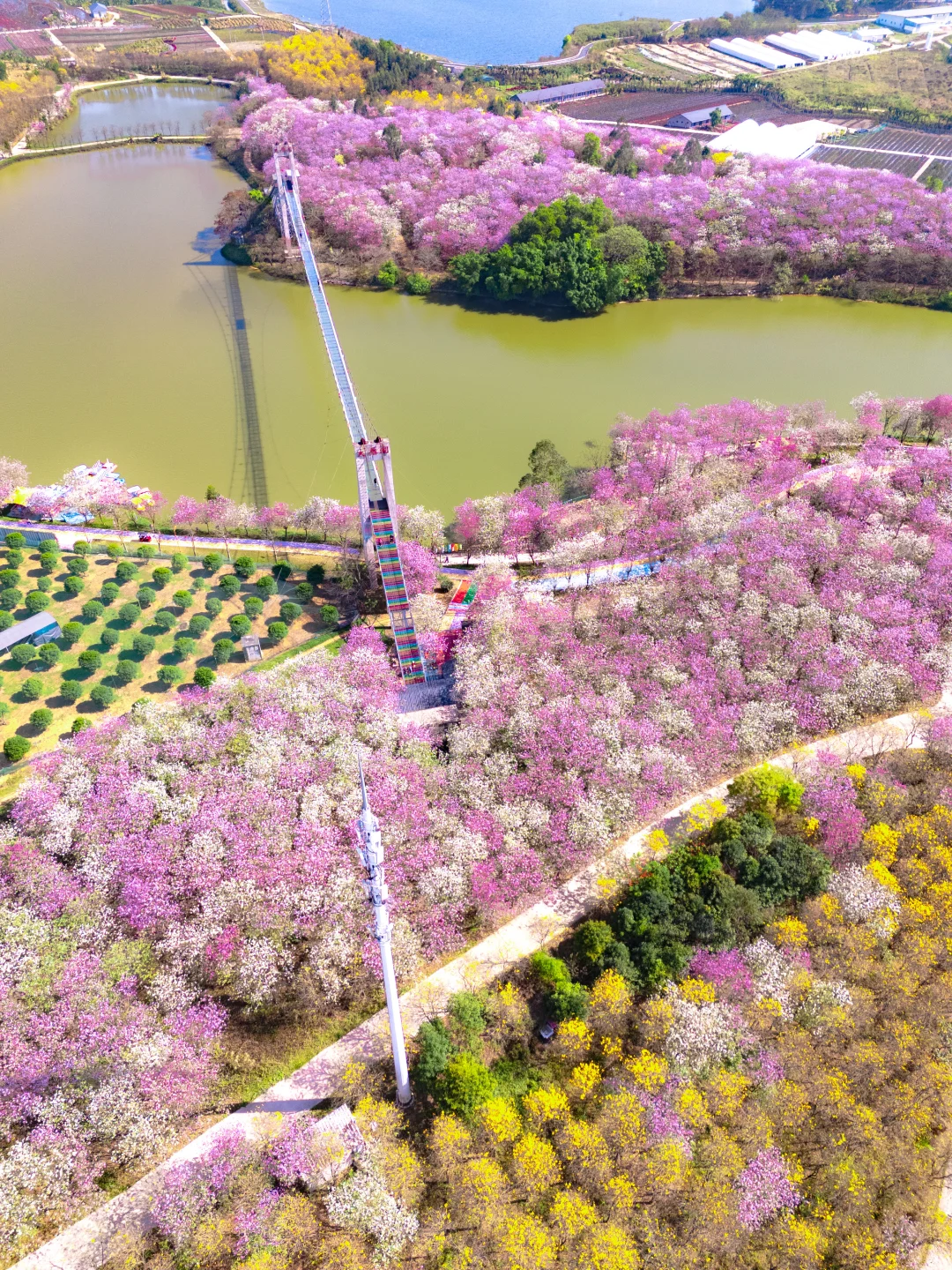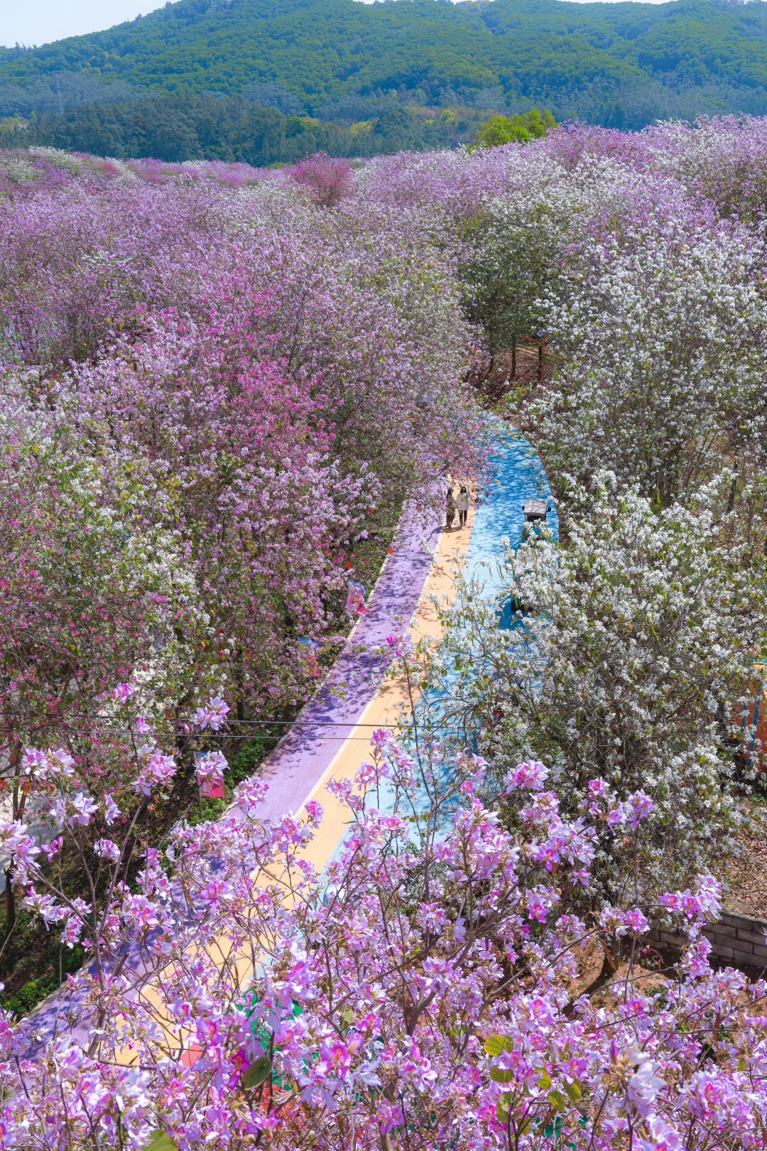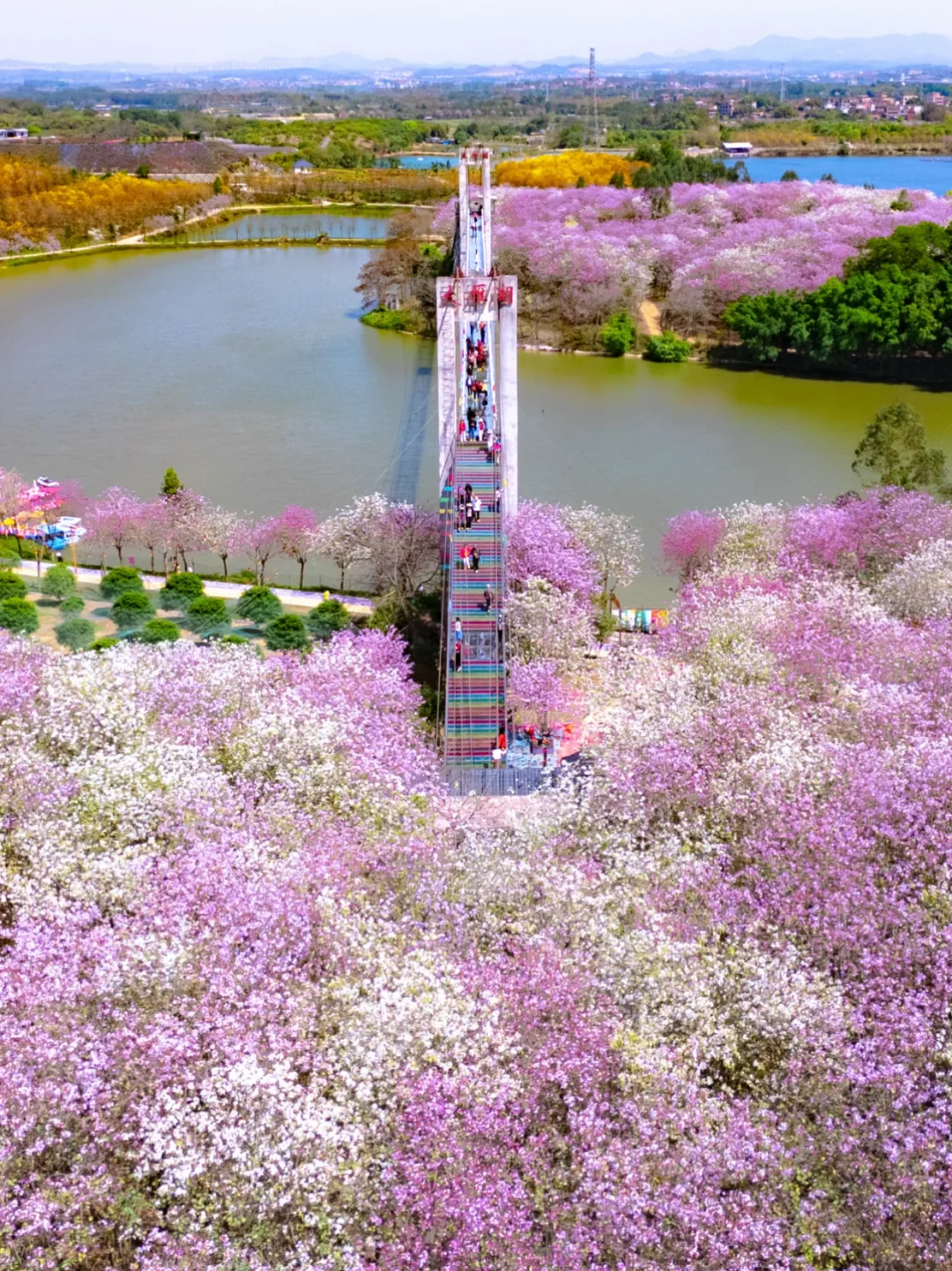 📷拍摄日期:2026年3月12日 - 不是贵州平坝樱花 是广州的千亩宫粉紫荆花海!! 万万没想到广州还私藏着这么一个赏花地 1100亩宫粉紫荆花 每年3月便开成了像粉紫色的云海🌸 风一吹花瓣簌簌落,像走在花廊里像闯进童话 - 💡游玩Tips ✅ 紫荆花大道:抬头全是粉紫,超级浪漫!!紫荆花花期:每年3月 ✅ 大雁湖玻璃桥:脚下花海一望无际,俯拍超震撼 ✅ 花田小火车轨道:坐着小火车穿花海,每一帧都能当壁纸 ✅除了赏花,景区还有10+的娱乐游玩项目:游船、彩虹滑道、碰碰车、卡丁车、海盗船……… - 📸拍照Tips 🔸建议浅色衣服,如白色粉色,拍照更温柔出片~ 🔸在玻璃桥上可以俯拍到大片的的紫荆花花海,很壮观!! 🔸有无人机的宝子,一定要带上!!航拍更震撼!! - 📍广州花都区赤坭镇 蓝田紫林旅游度假区 🚗自驾最方便,有免费停车场 ⏰花期:现在正盛!3月中旬是黄金期,别等谢了再后悔呀~ 💡Tips:最近紫外线很猛,记得带墨镜、遮阳帽,涂好防晒!! -