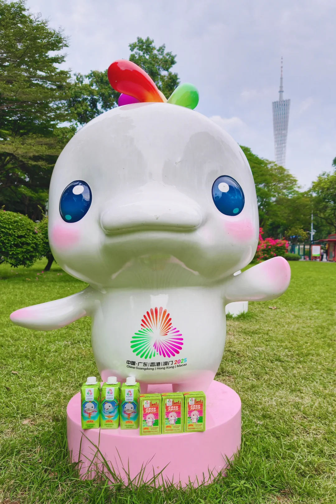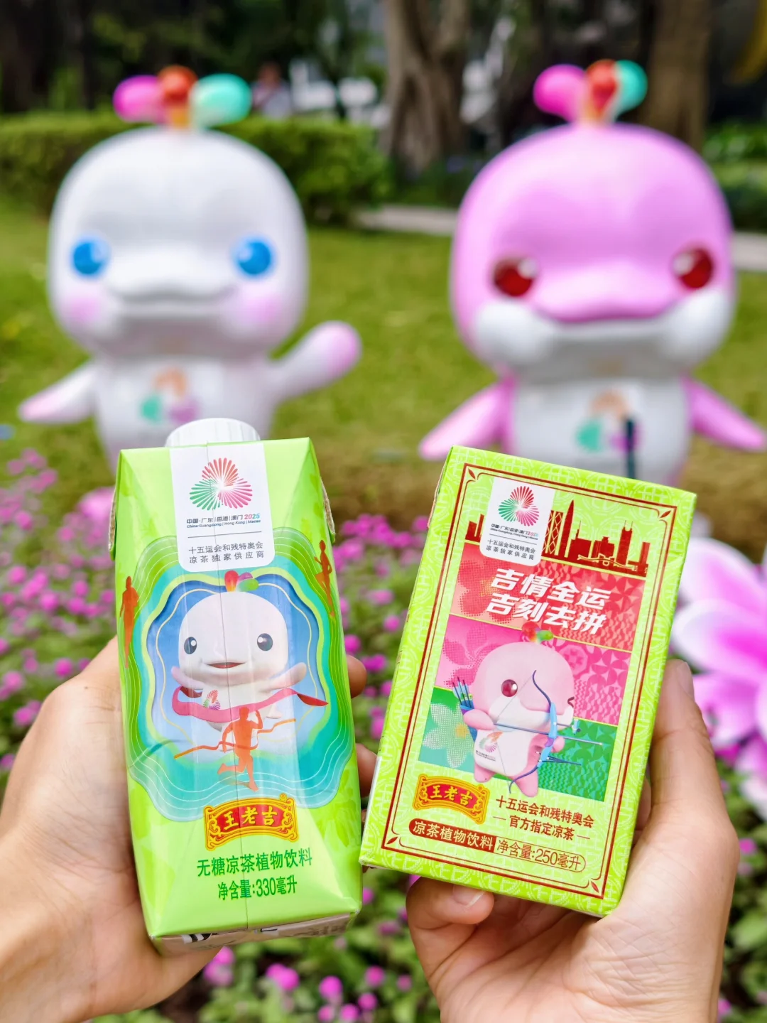 这次十五全运会的吉祥物“白切鸡”和“玫瑰鸡” 真的太太太太萌啦~~ 今天特意带着十五运会限定“大湾鸡”包装王老吉 出门和“大湾鸡”合照啦📷 还能和广州塔同框哦! 这条广州拍照一日游攻略快mark一下吧! - 🚶广州citywalk一日游路线 花城广场(大湾鸡与广州塔同框)➠海心沙(花海)➠海心桥➠宏城广场(园博展)➠传祺公园(大湾鸡与广州塔同框)➠广州塔广场 - 🥤十五运会定制装的王老吉凉茶、王老吉无糖凉茶 包装盒上印有“大湾鸡”的可爱运动造型 不仅能用来做拍照道具 还能当作能量补给饮料,清凉下火 小瓶轻巧、很适合户外出游携带~ - 🏊大湾区全运会运动比赛正火热进行 王老吉杯游泳比赛也非常非常值得追 观赛时,别忘了来一瓶王老吉凉茶哦~~ -