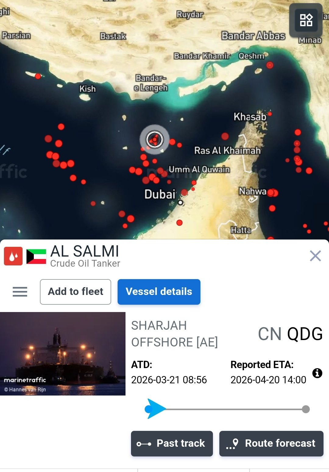 🔻英国海上贸易行动办公室报告了一起发生在迪拜西北约 31 海里处的事件,一艘在锚地的科威特油轮“阿尔萨尔米”号(IMO 9534793)右舷遭不明抛射物击中,船上起火。🔻这是一艘标准载重 200 万桶原油的 VLCC(超大型油轮)。科威特石油公司周二早些时候表示,“阿尔萨尔米”号在停靠阿联酋迪拜港锚地时遭到直接袭击。🔻科威特石油公司在新闻声明中称,事故发生时该油轮处于满载状态,事件发生于当地时间 3 月 31 日周二凌晨约 12:10 时。伊朗最大岛屿遭美以袭击美军使用钻地弹袭击伊大型弹药库海外新鲜事中东现场直击